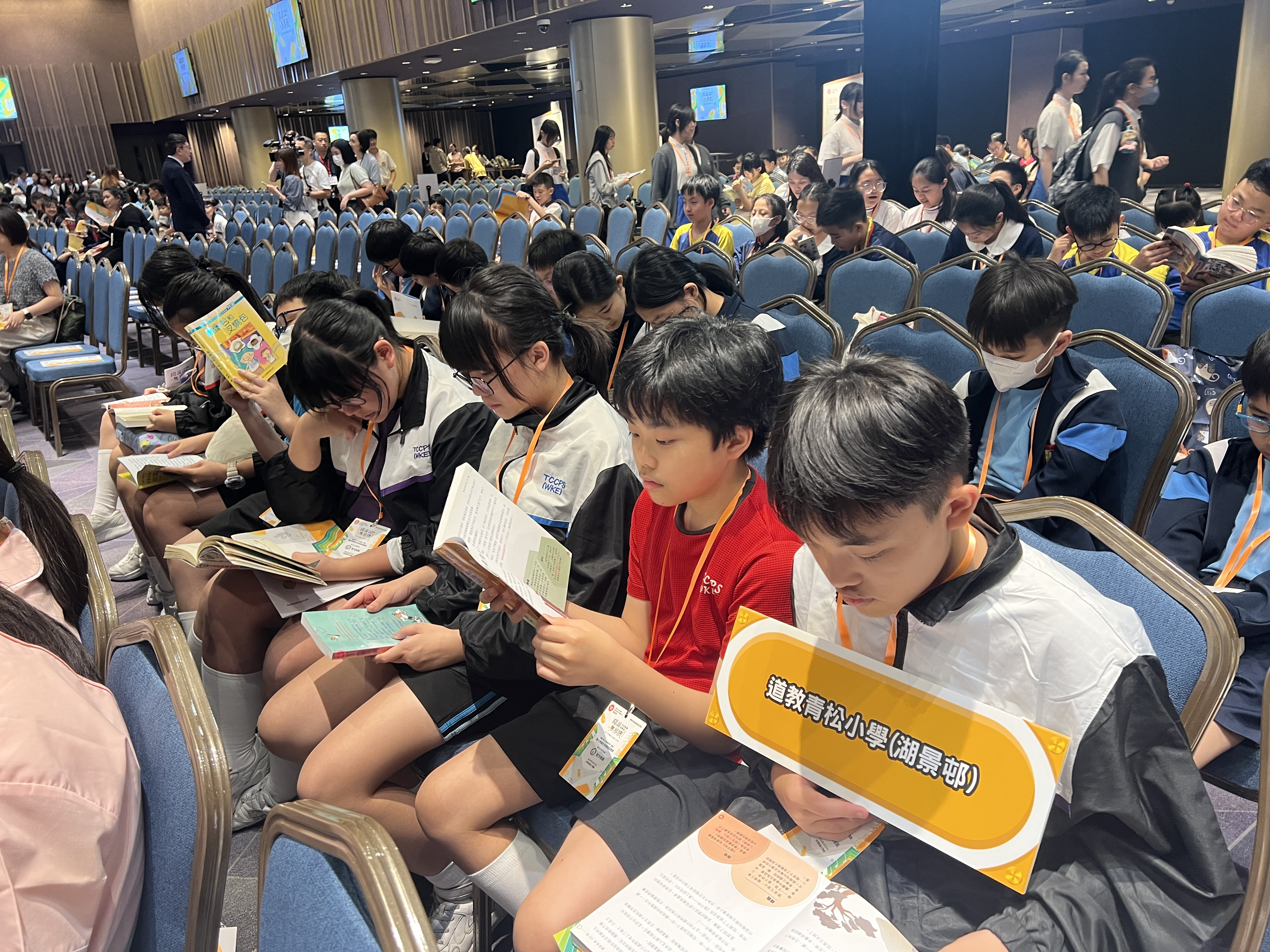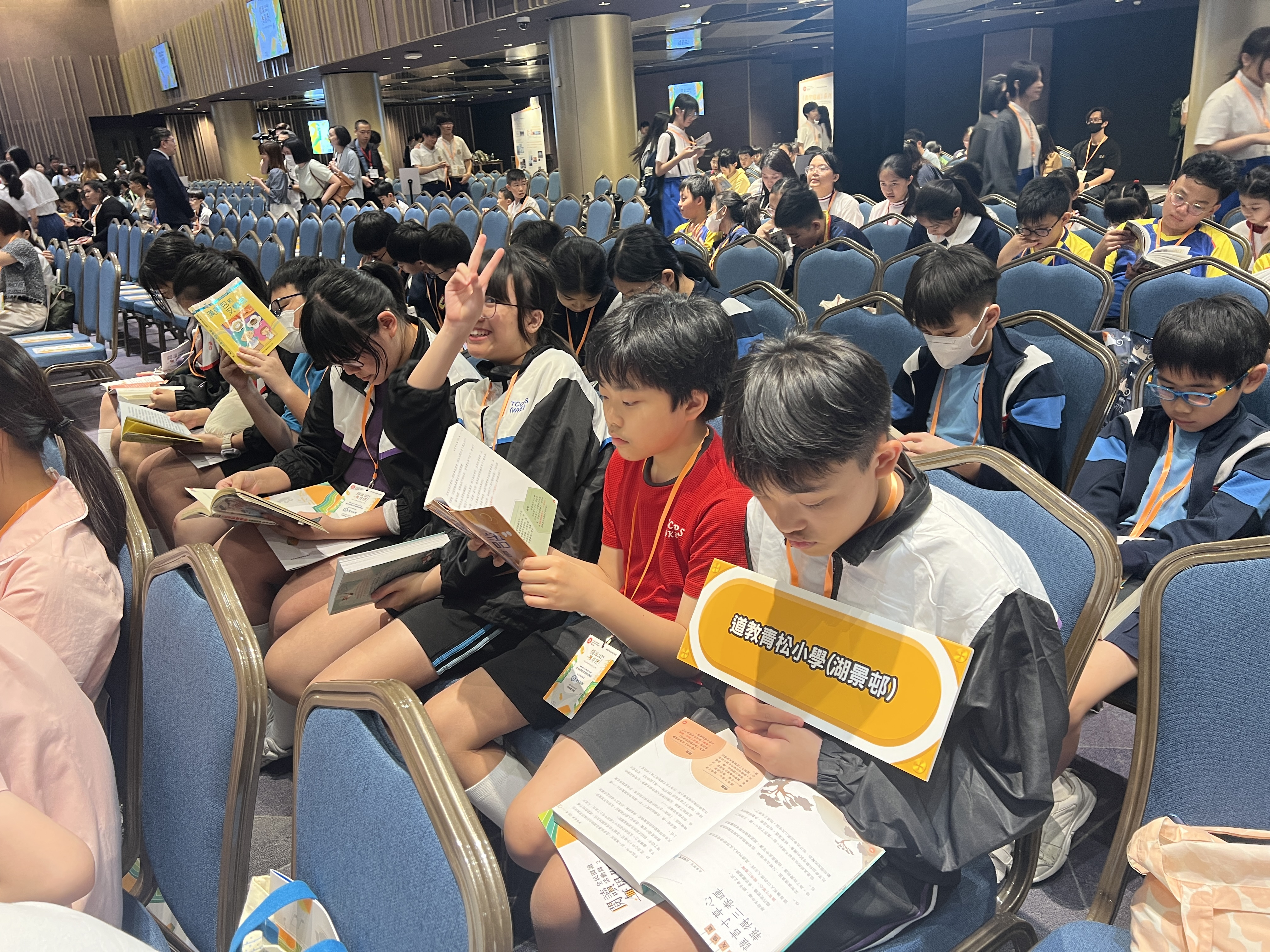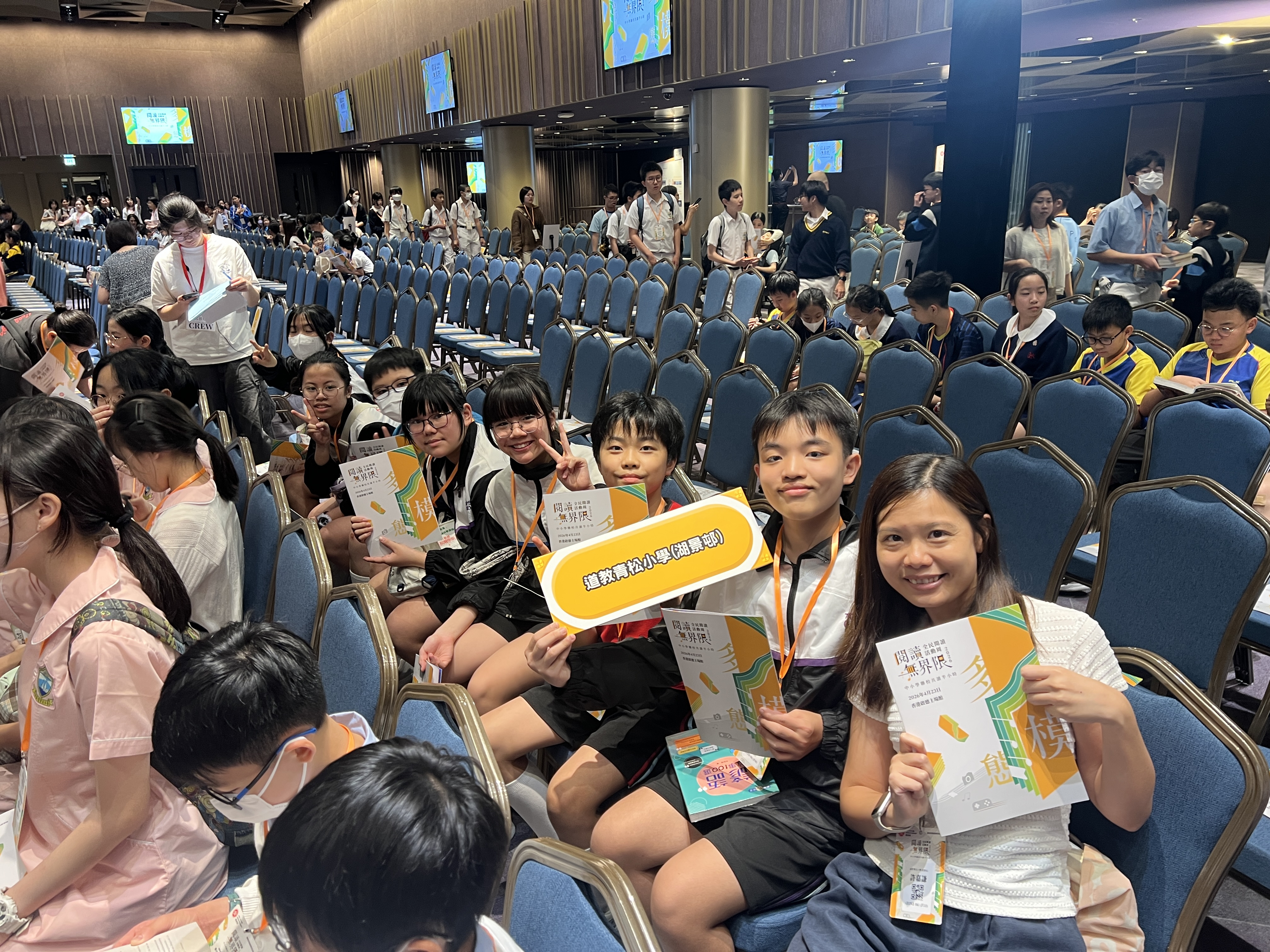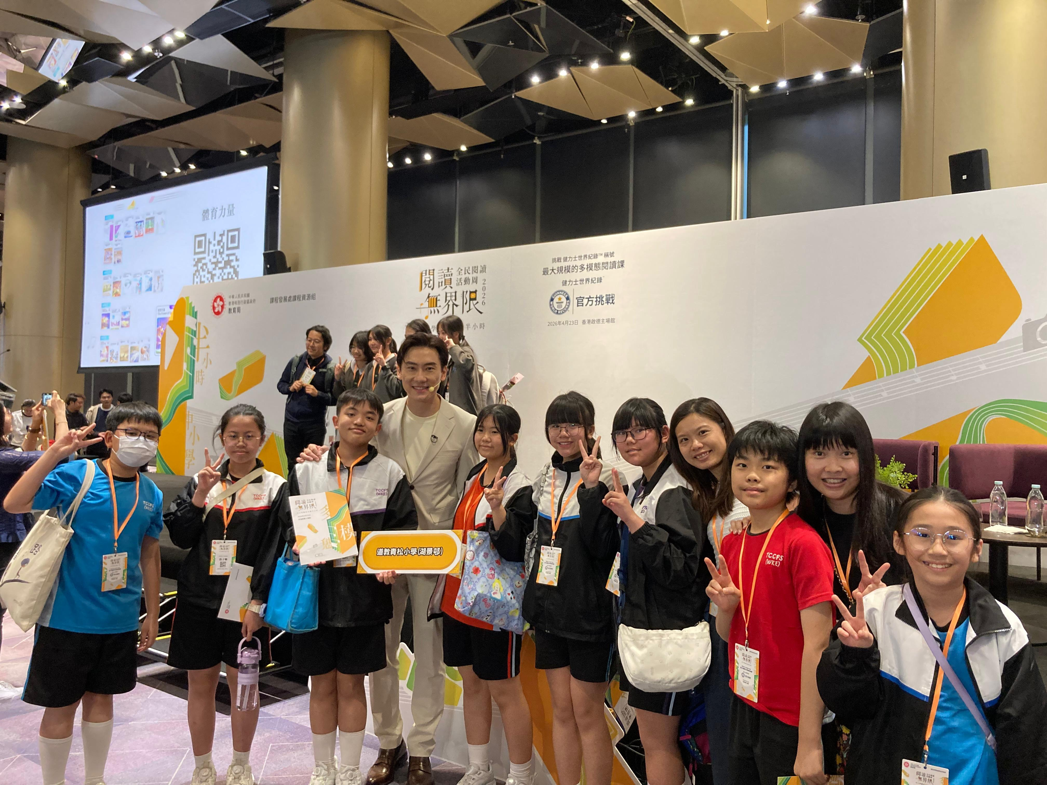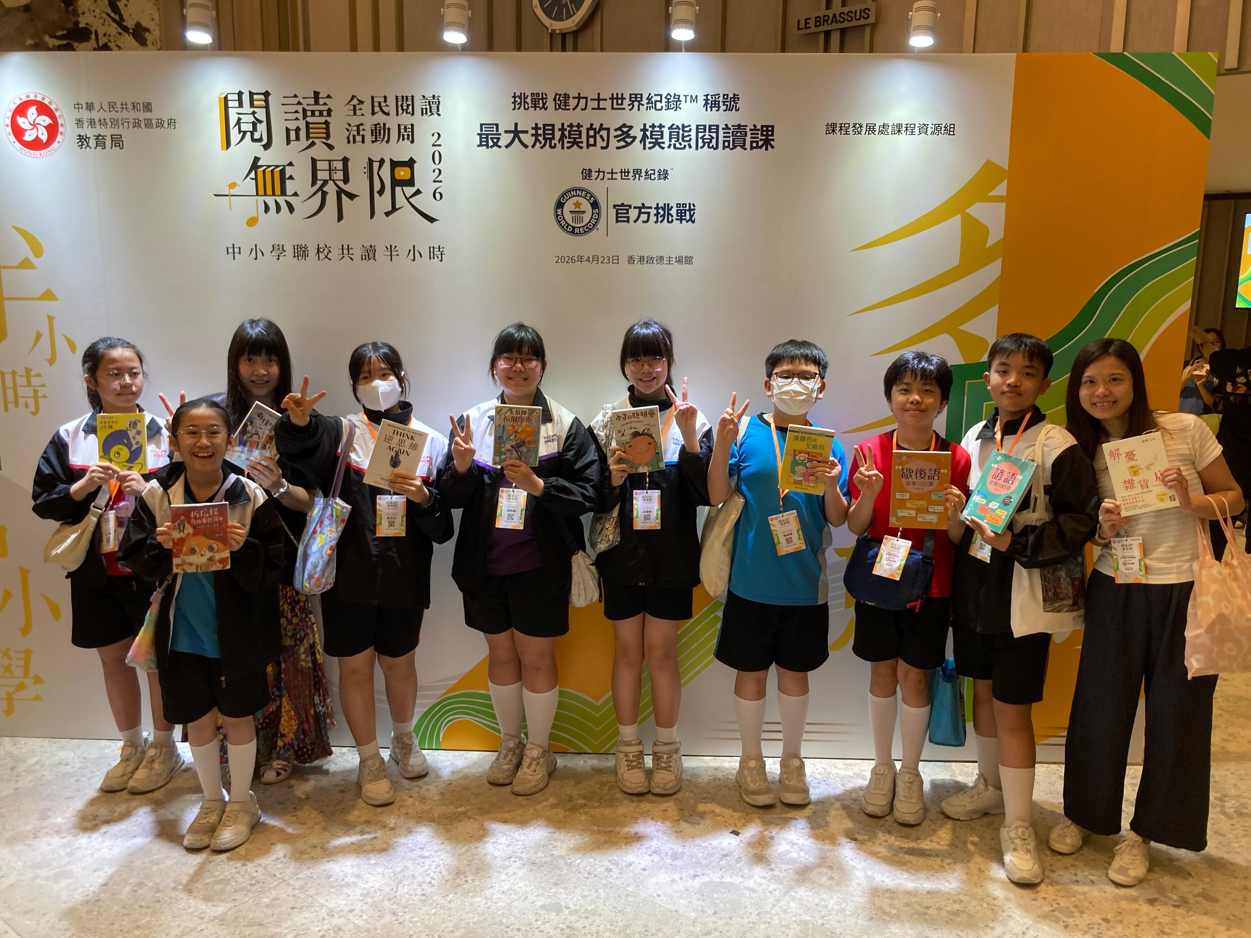 本校很高興能夠參與由教育局課程發展處舉辦的「閱讀無界限分享會暨中小學聯校共讀半小時」活動。當天節目內容精彩豐富,氣氛熱烈而充滿啟發。首先,由林溥來先生(Patrick Sir)帶領全場進行多模態閱讀課,透過不同媒介與互動方式,讓同學們更投入地探索閱讀的樂趣。其後,著名歌手許廷鏗先生更獻唱三首動聽歌曲,為活動增添不少溫暖與活力。活動亦安排了中小學聯校共讀半小時,讓不同學校的師生共同閱讀、分享心聲,彼此交流成長。