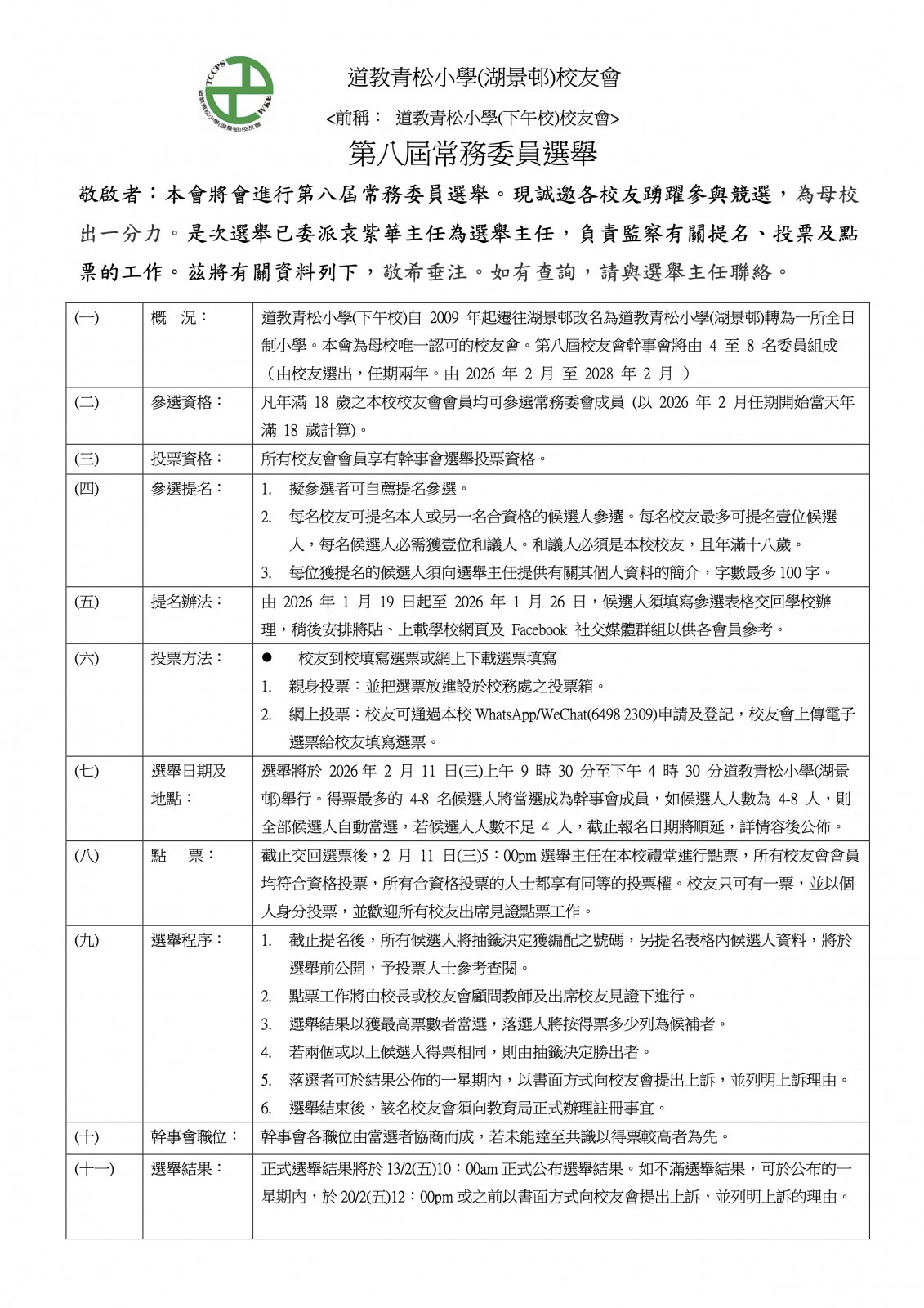 校友會第八屆常務委員選舉通告