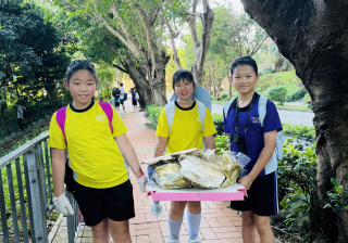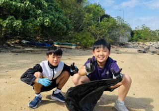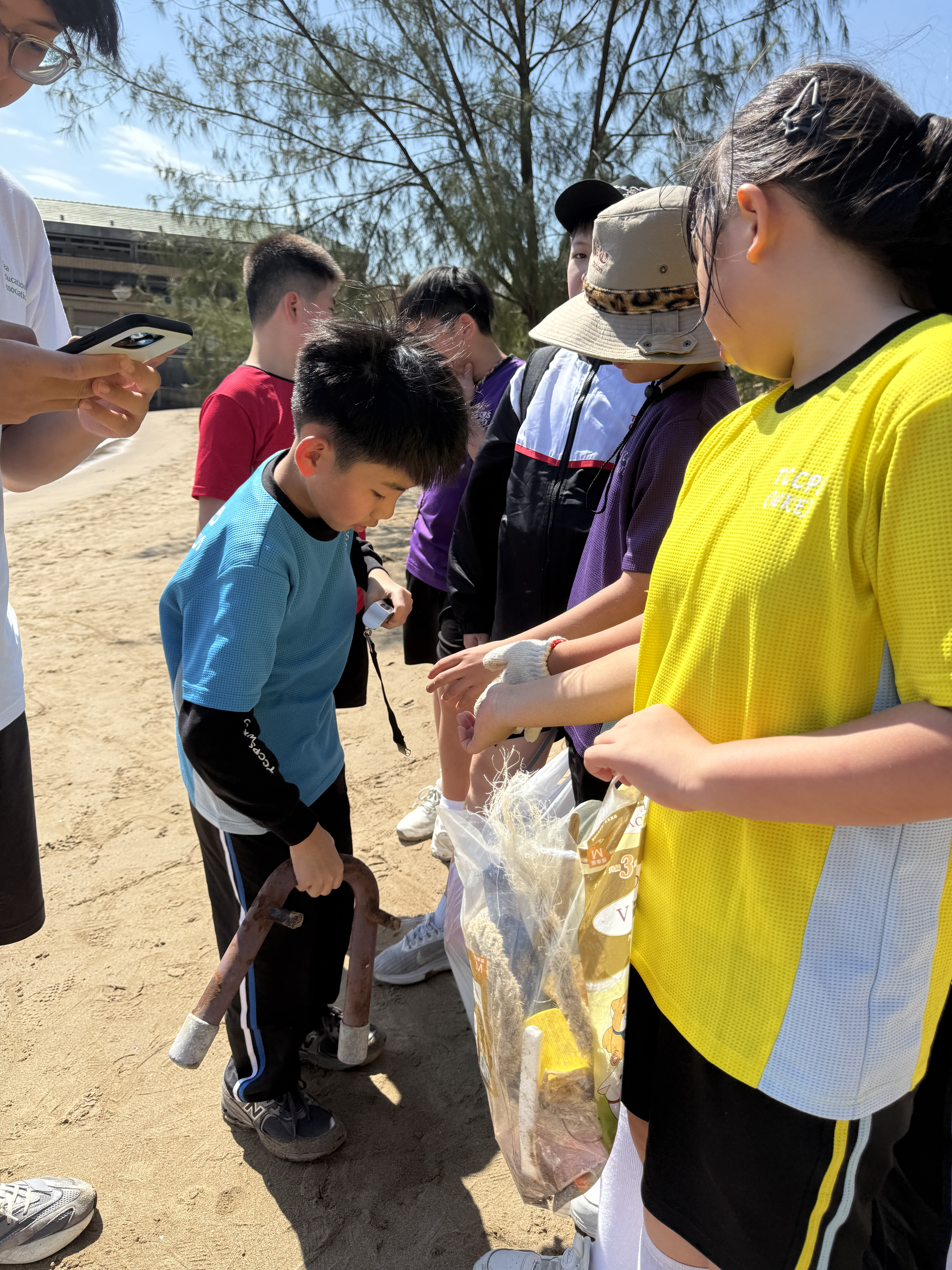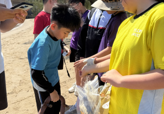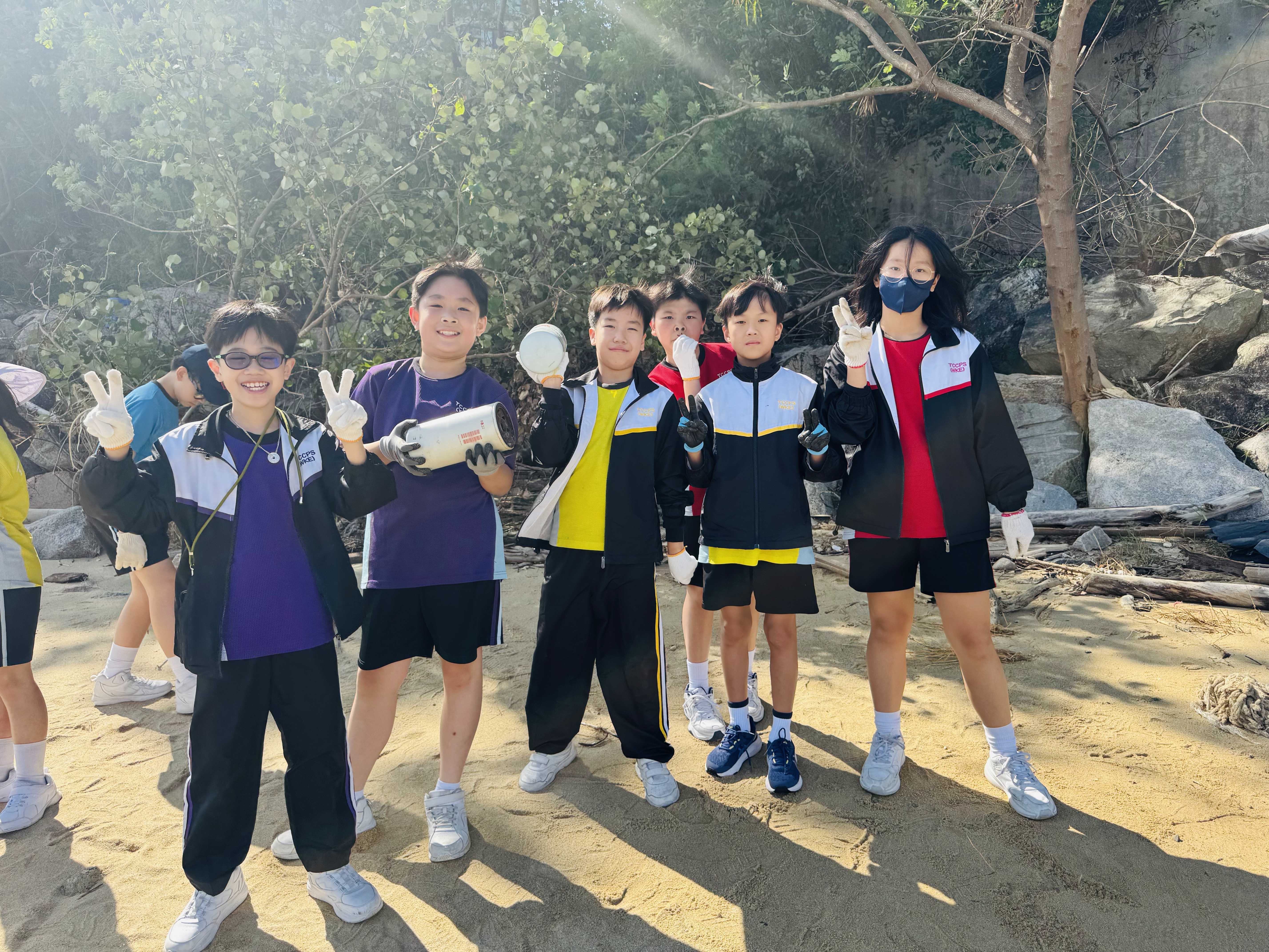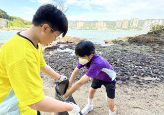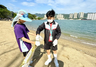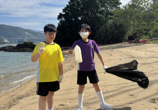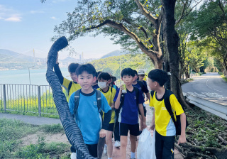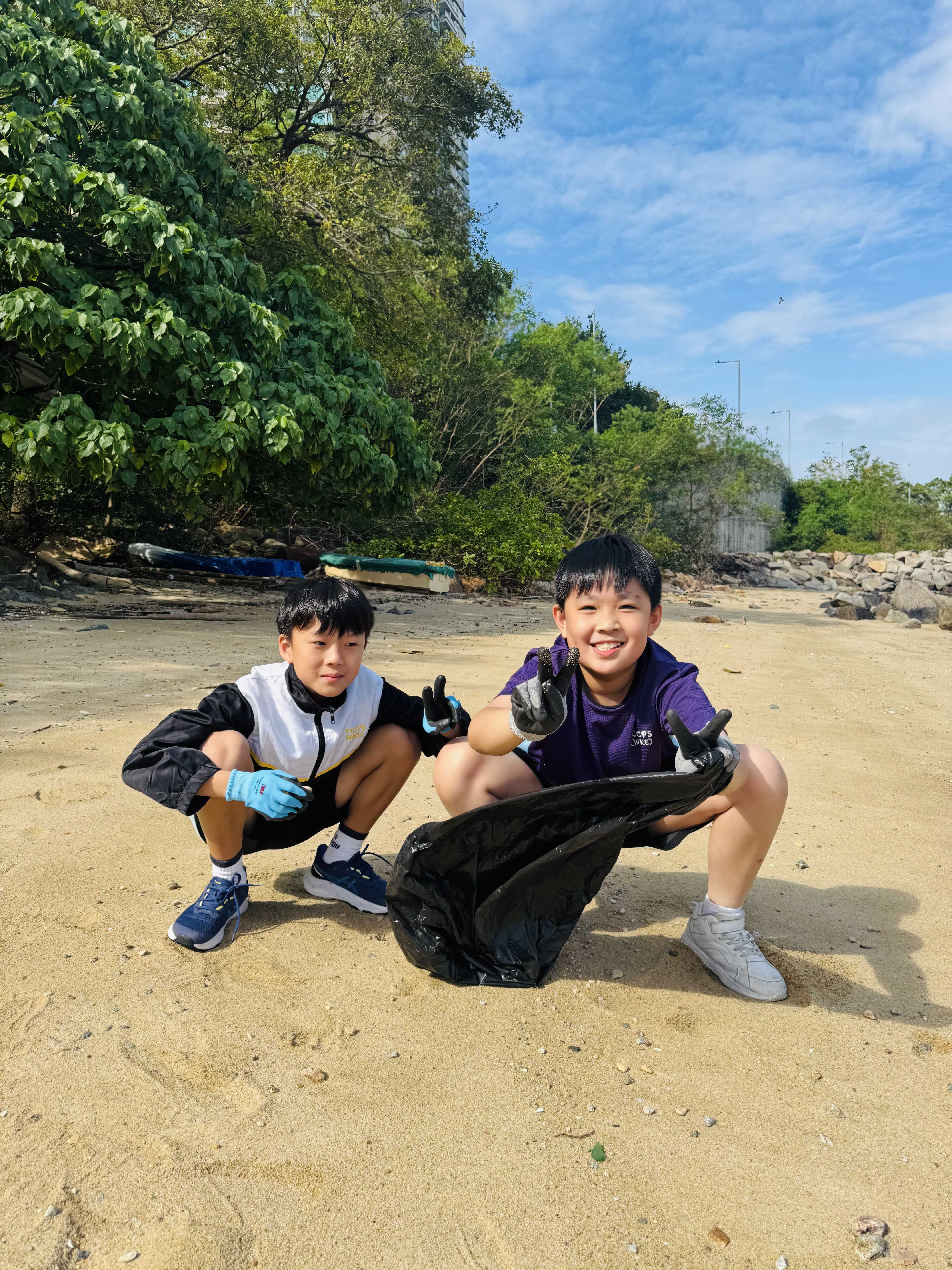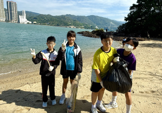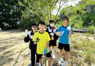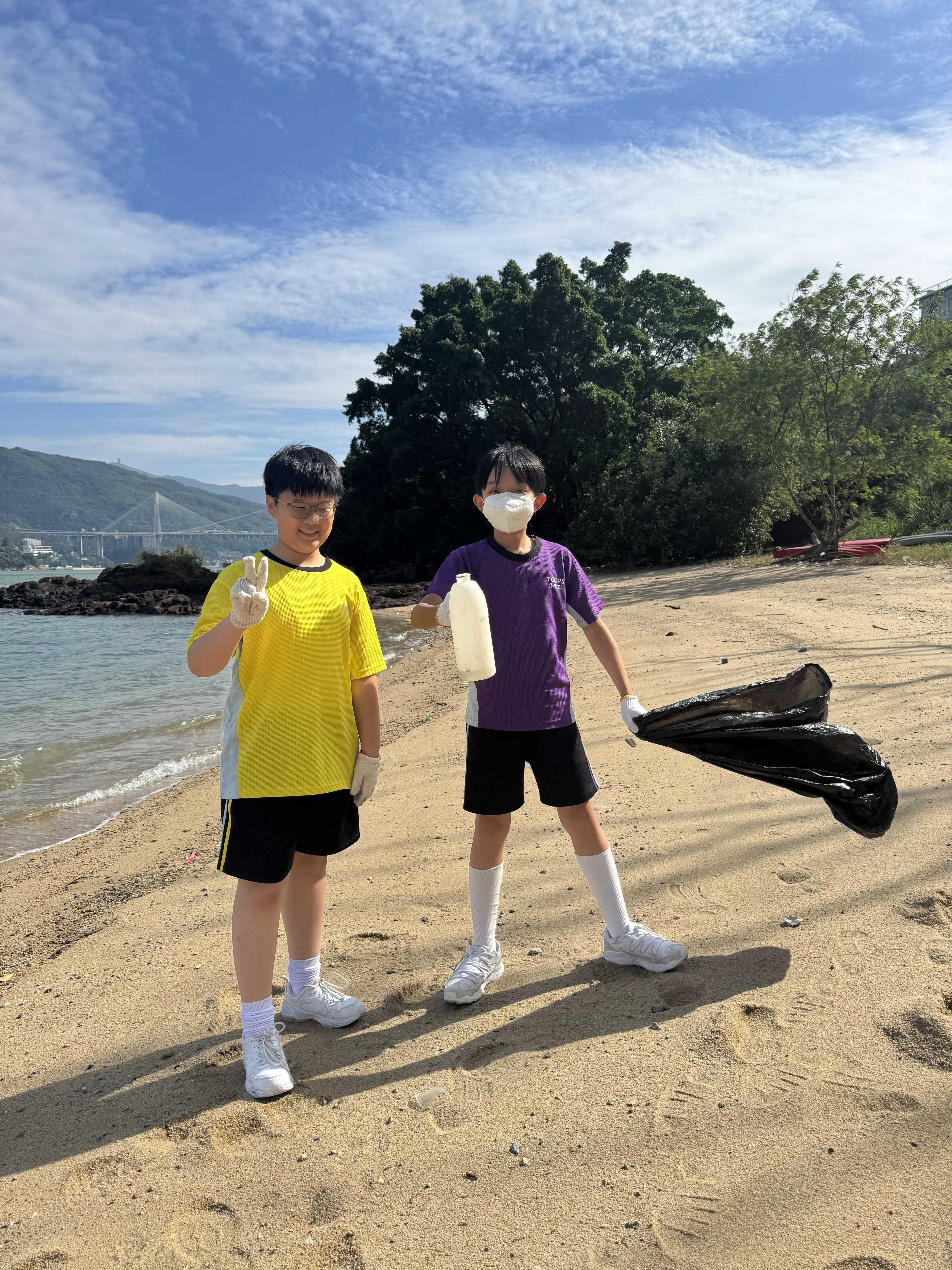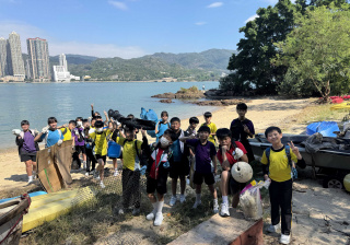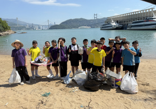5-6年級同學身體力行,前往沙灘清潔垃圾,齊齊為保護海岸生態出一分力。