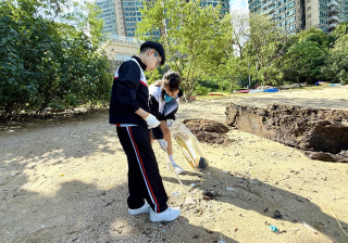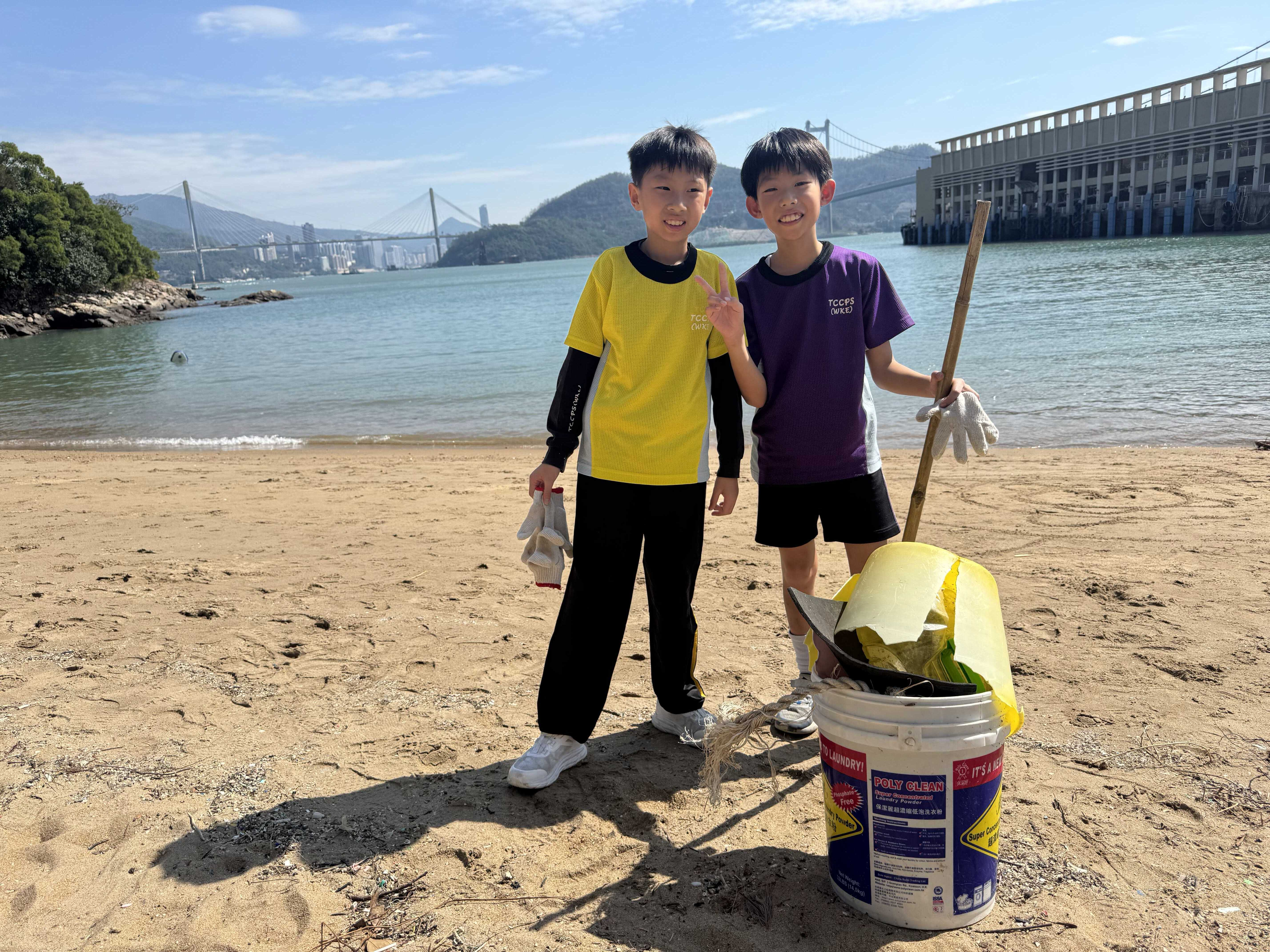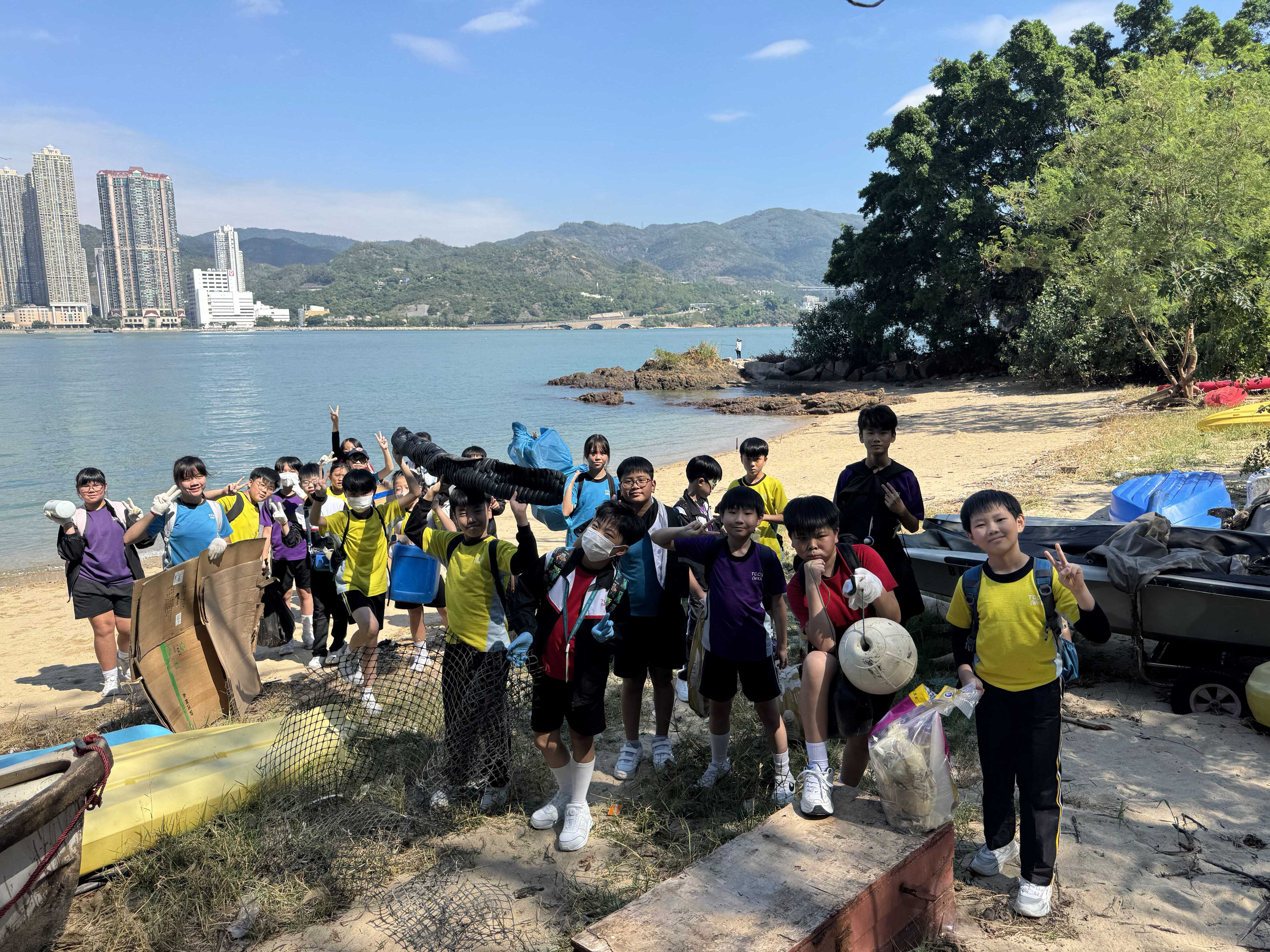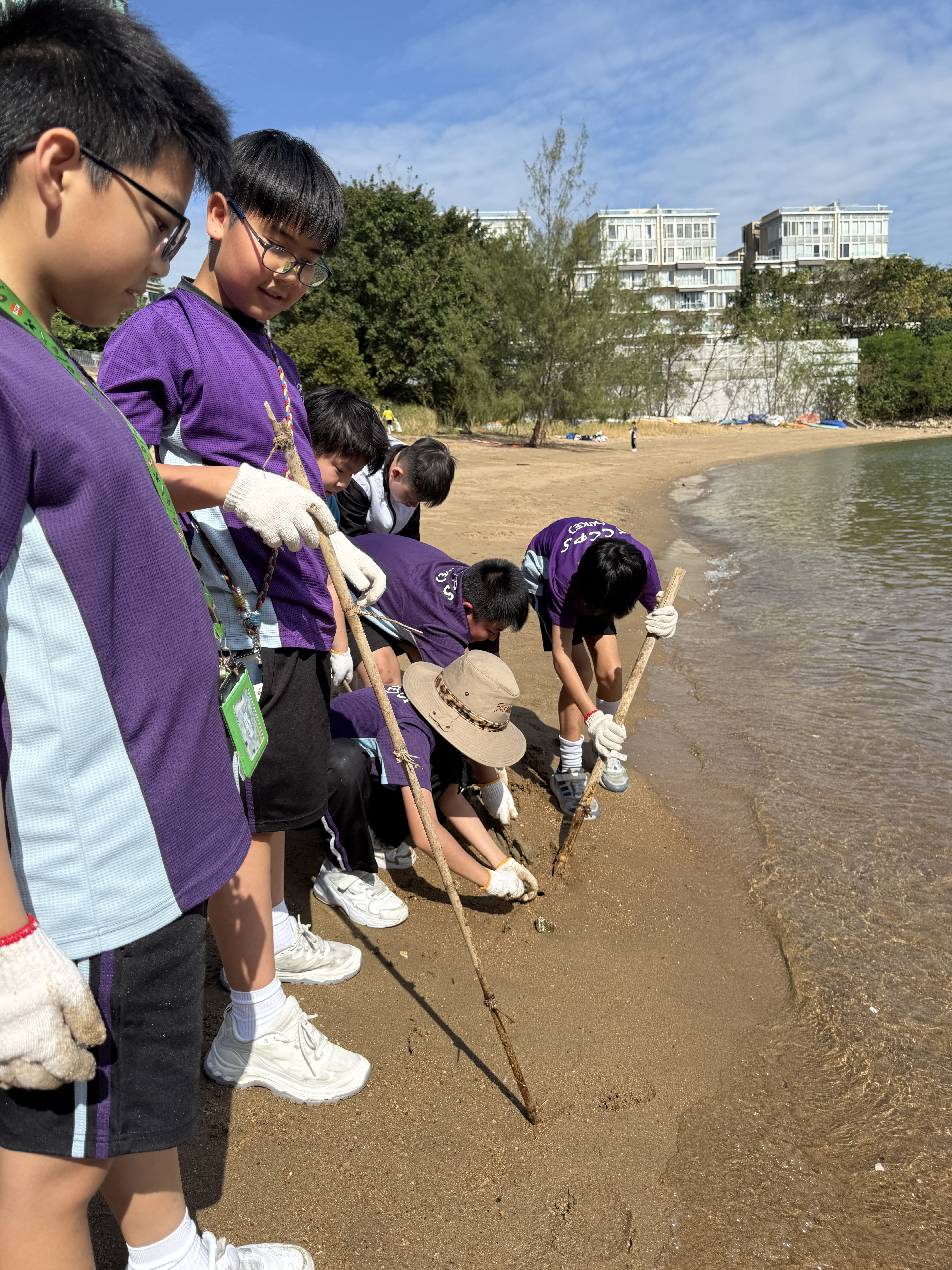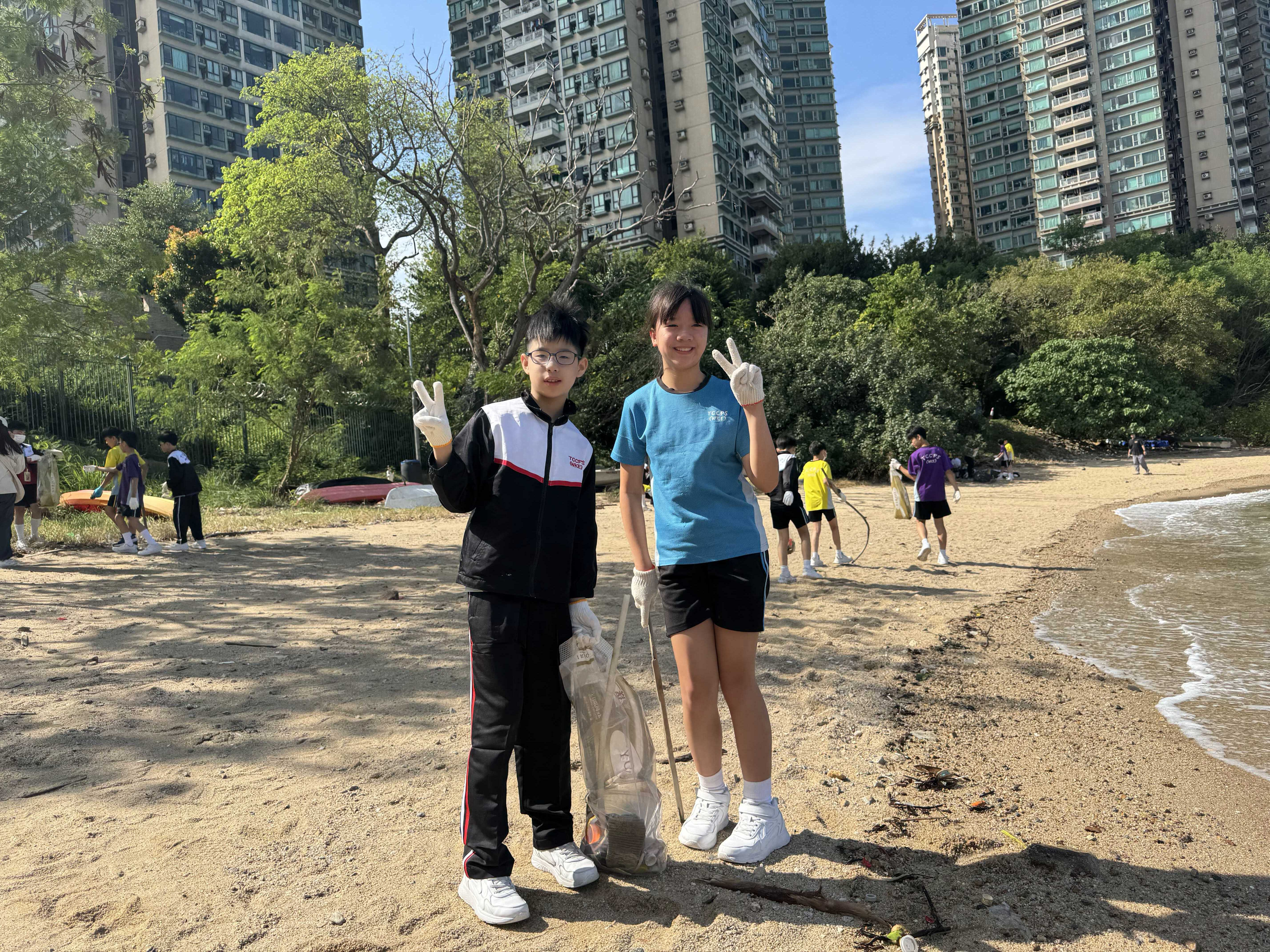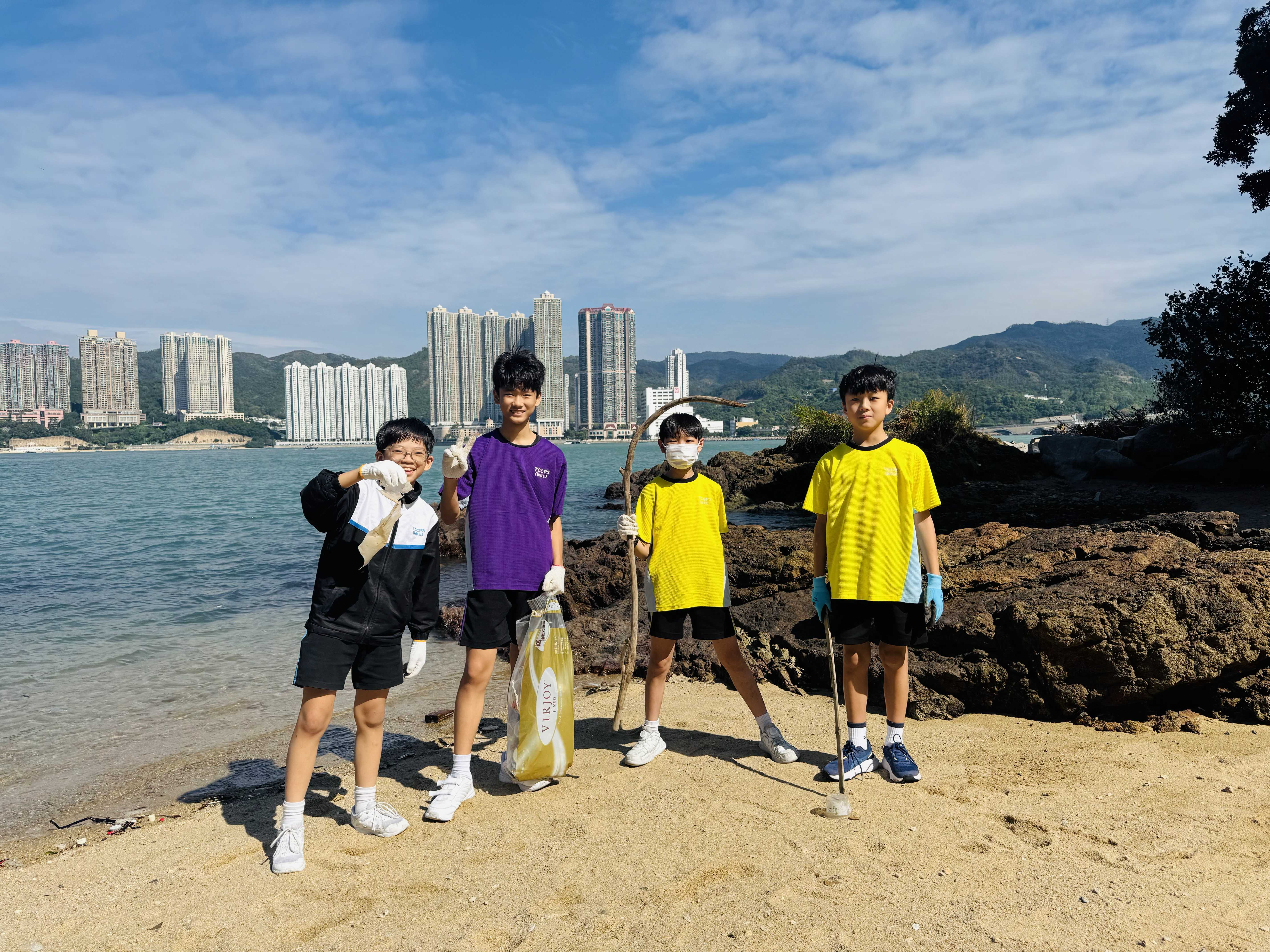 5-6年級同學身體力行,前往沙灘清潔垃圾,齊齊為保護海岸生態出一分力。