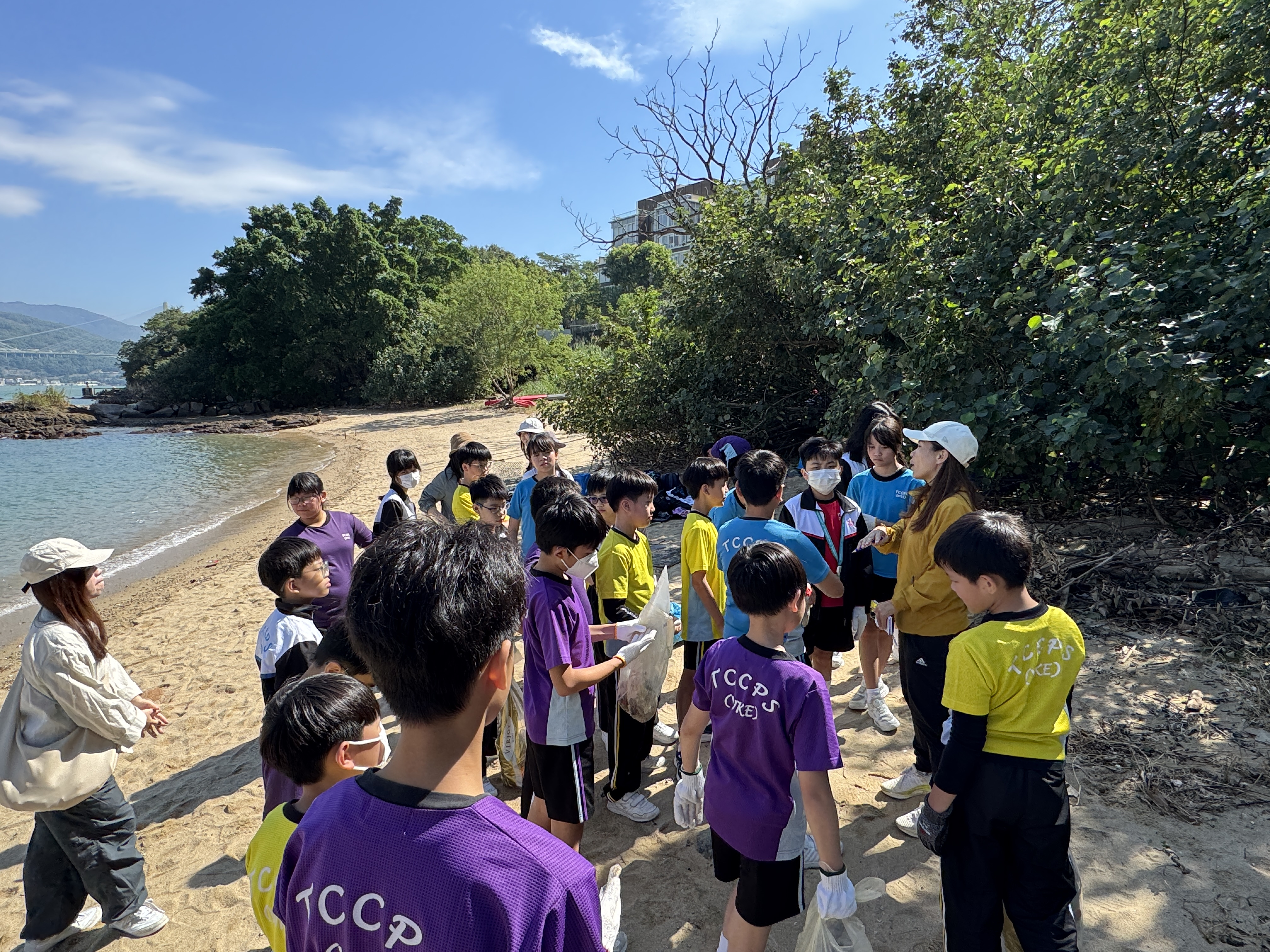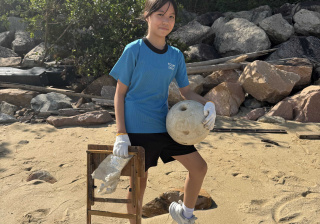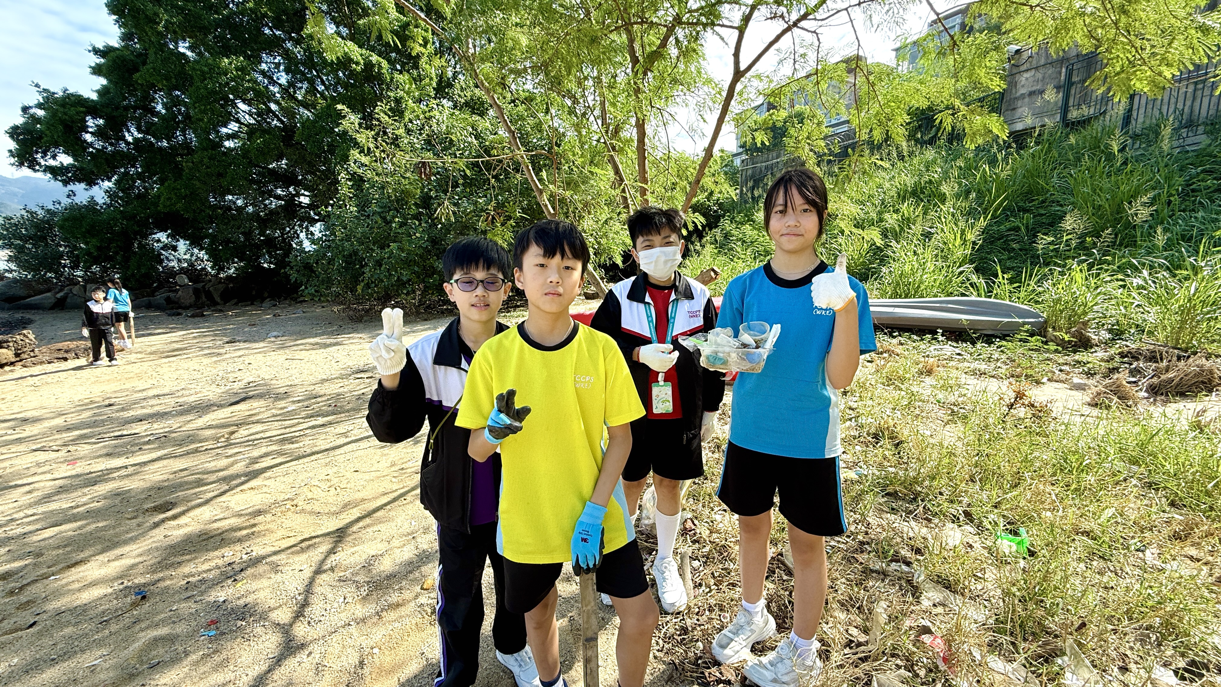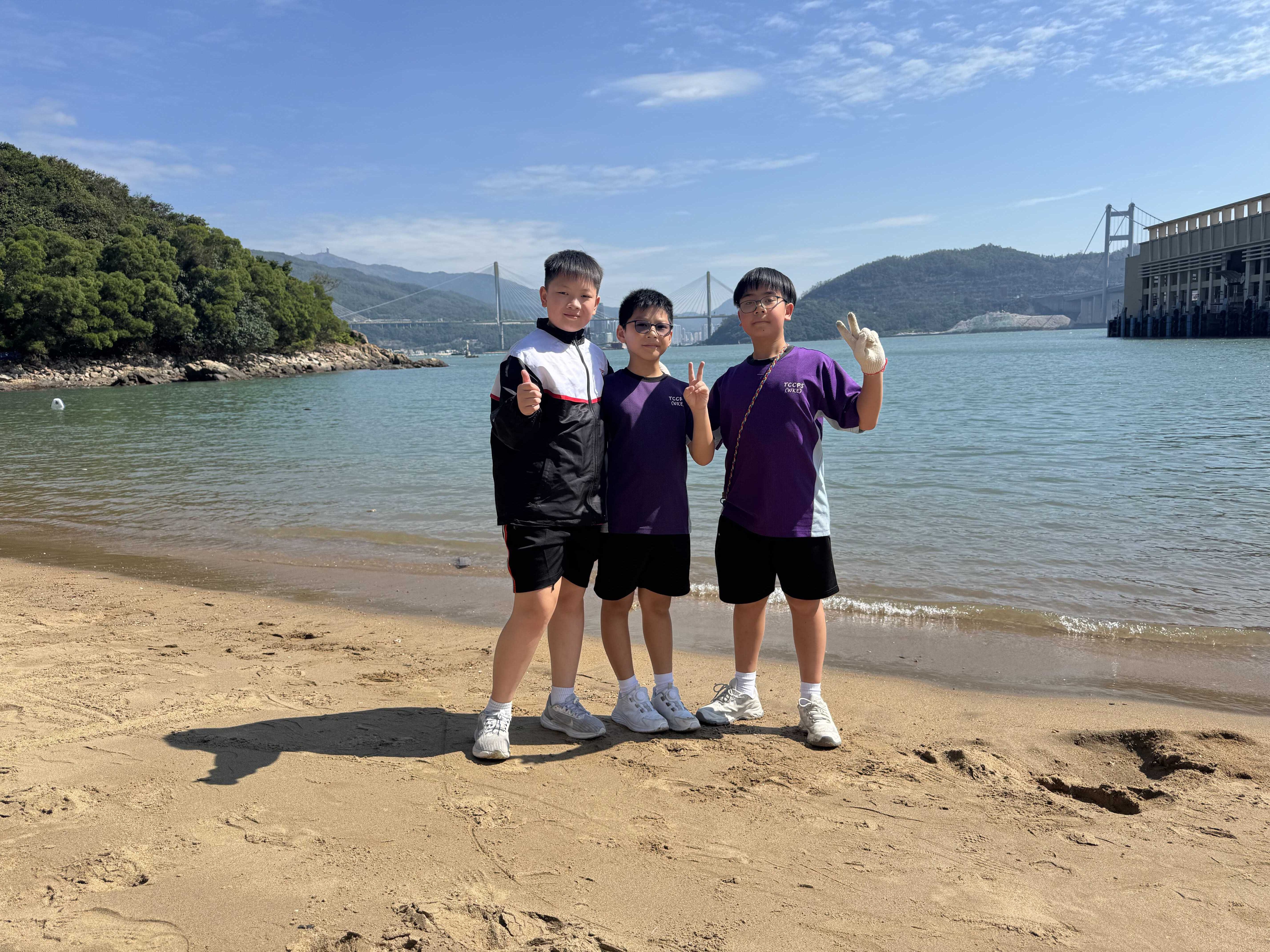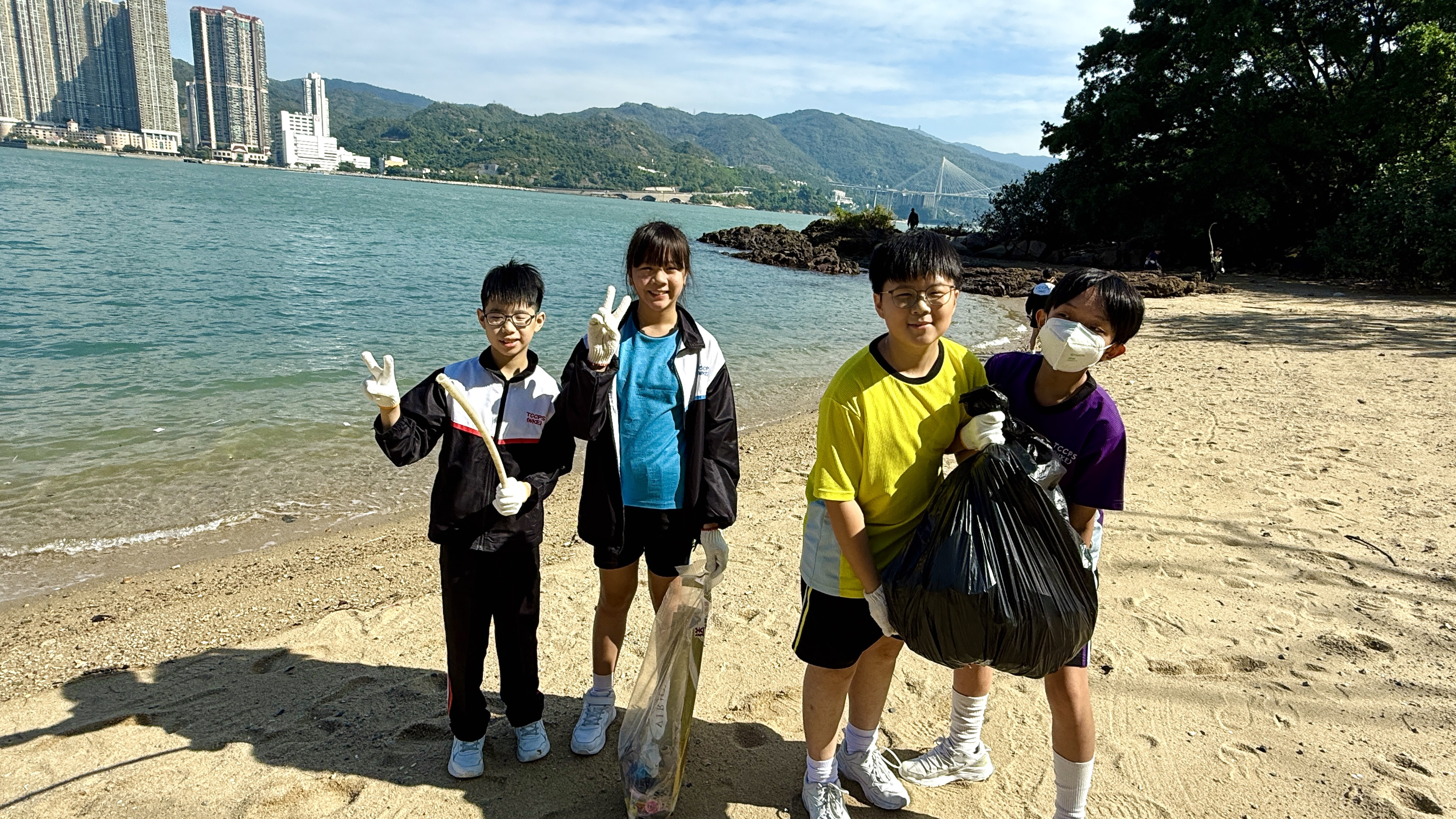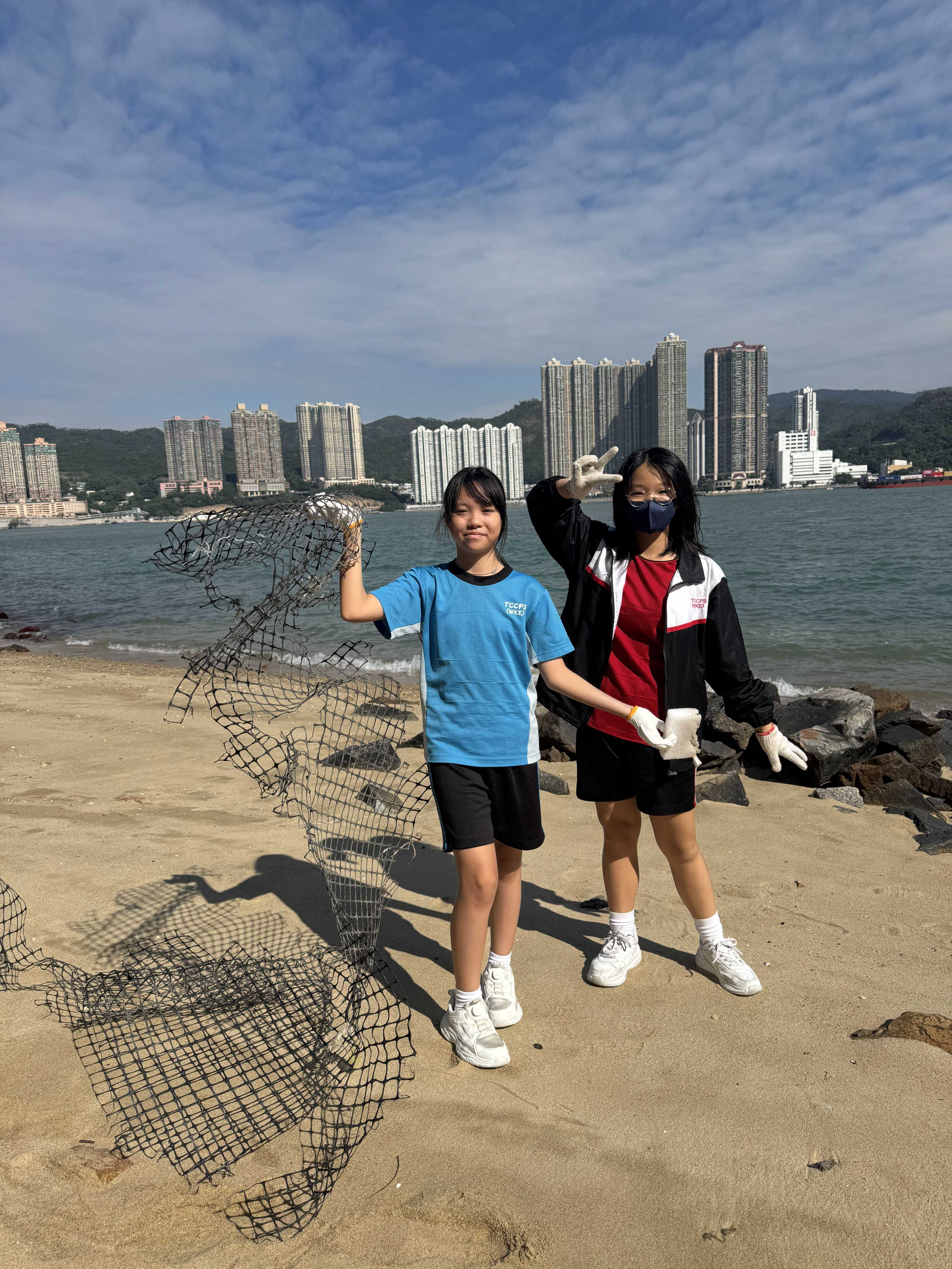 5-6年級同學身體力行,前往沙灘清潔垃圾,齊齊為保護海岸生態出一分力。