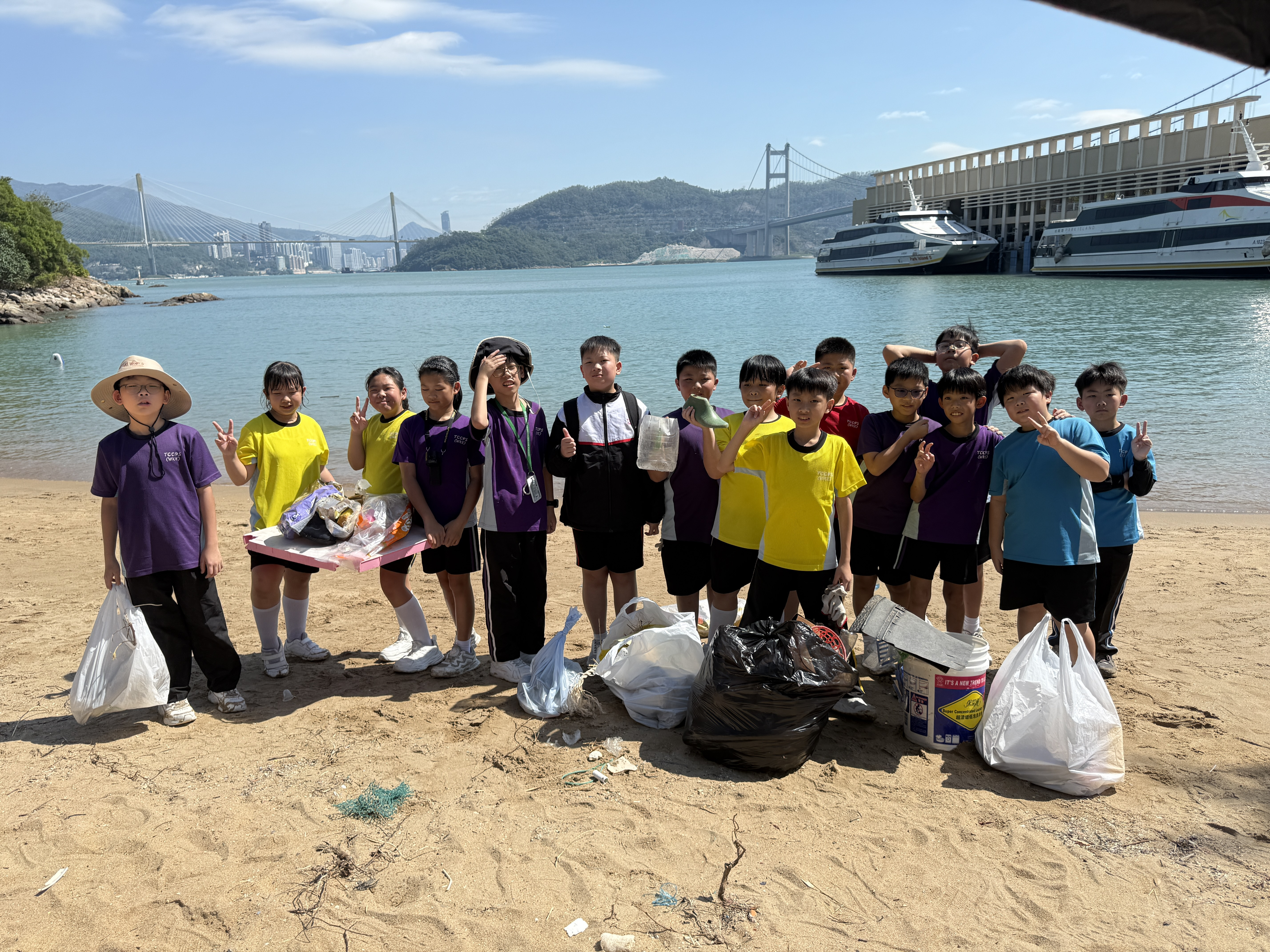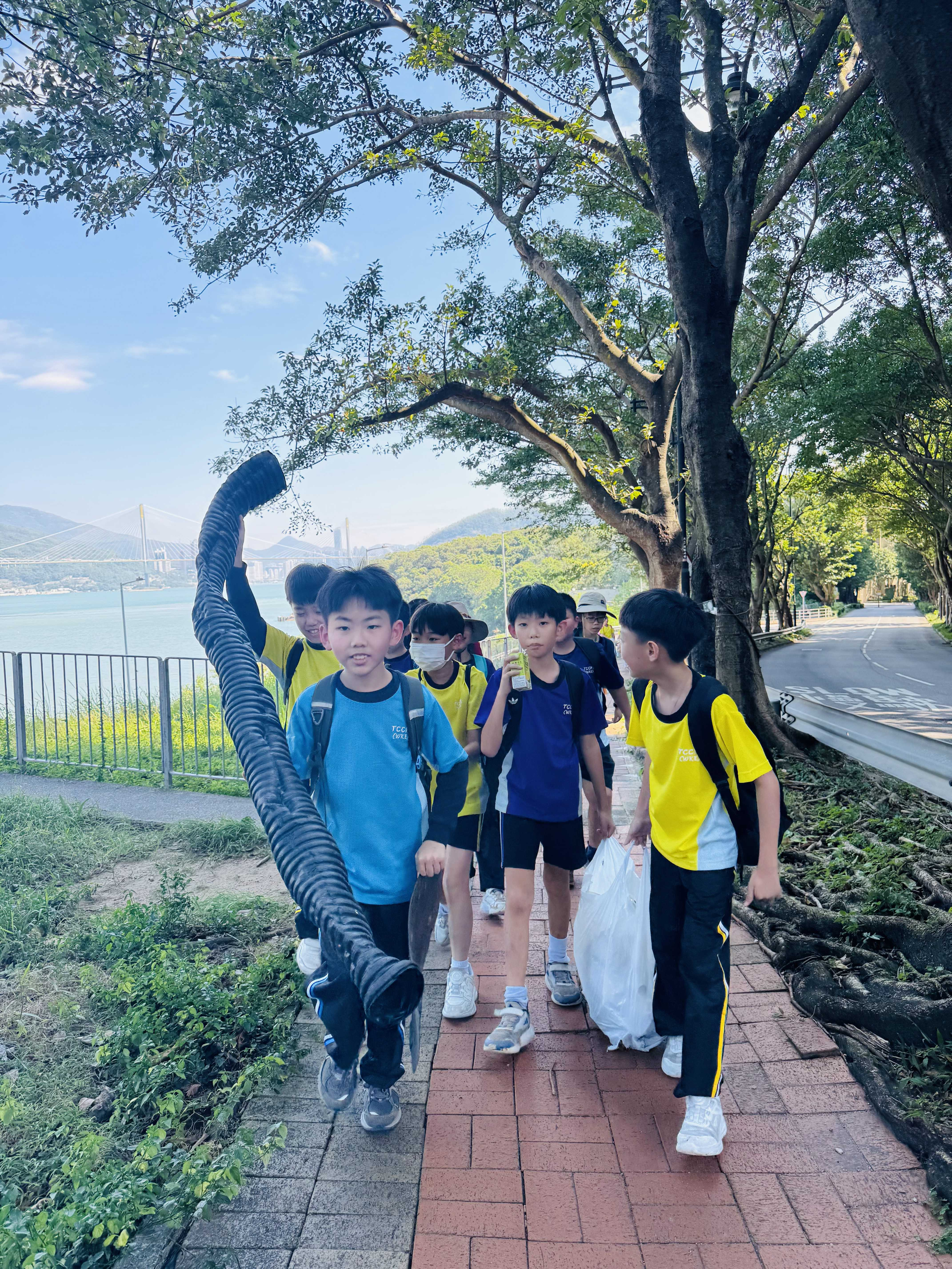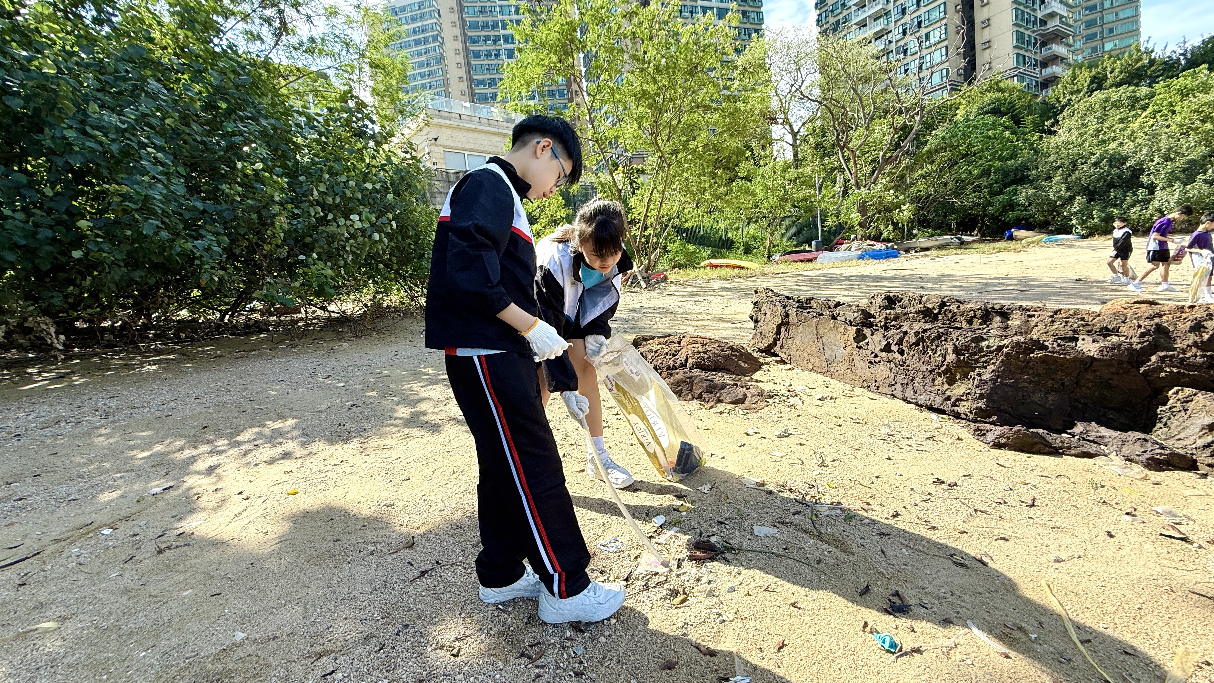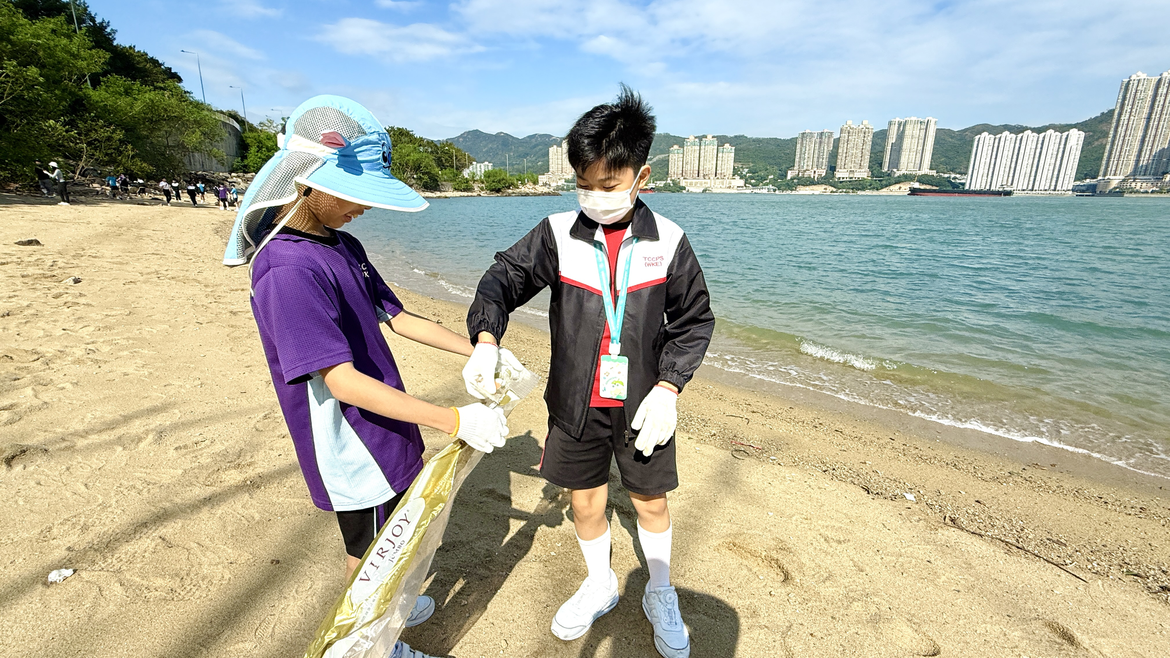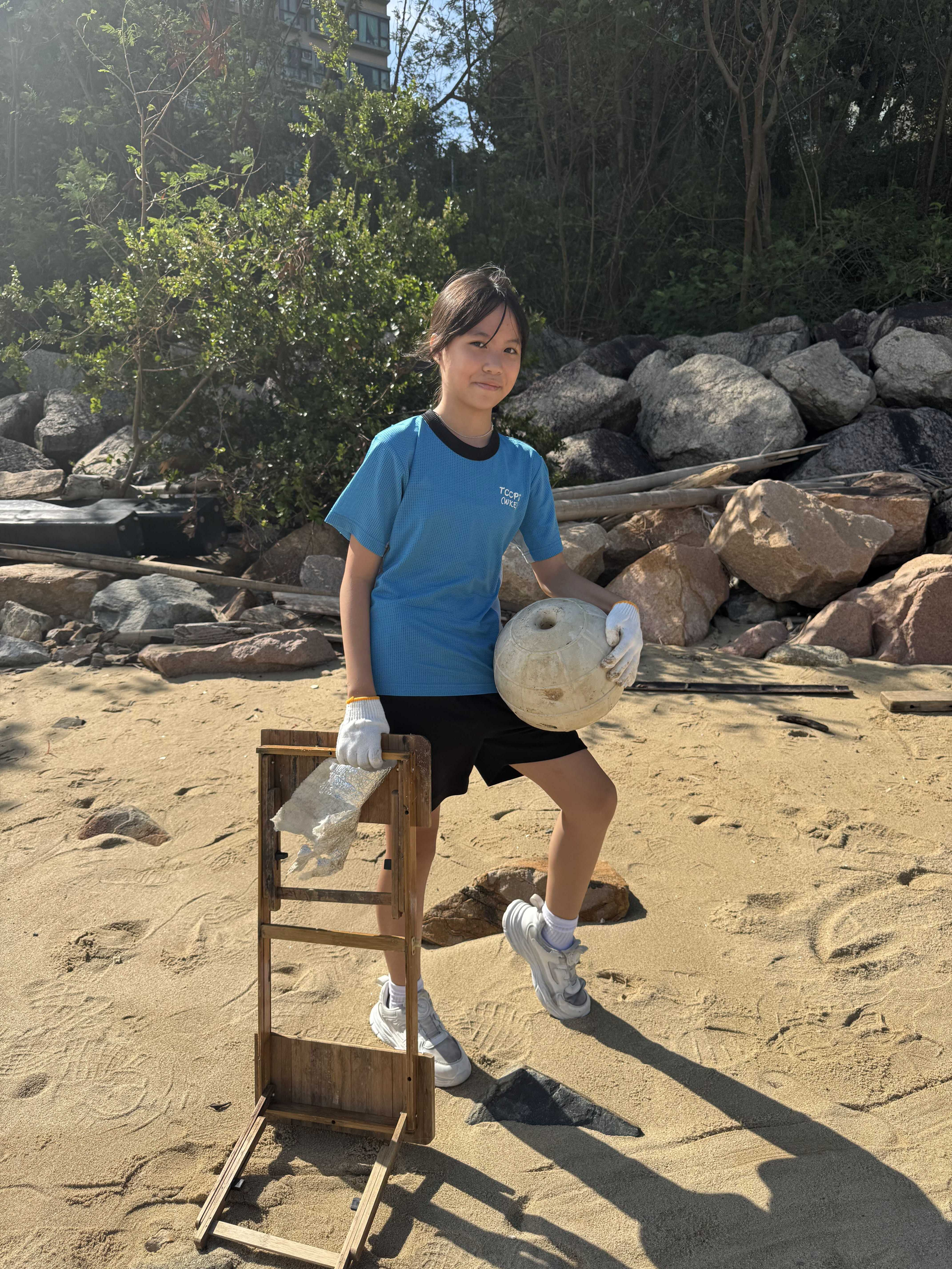 5-6年級同學身體力行,前往沙灘清潔垃圾,齊齊為保護海岸生態出一分力。