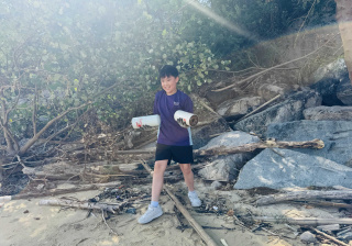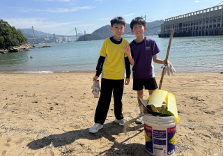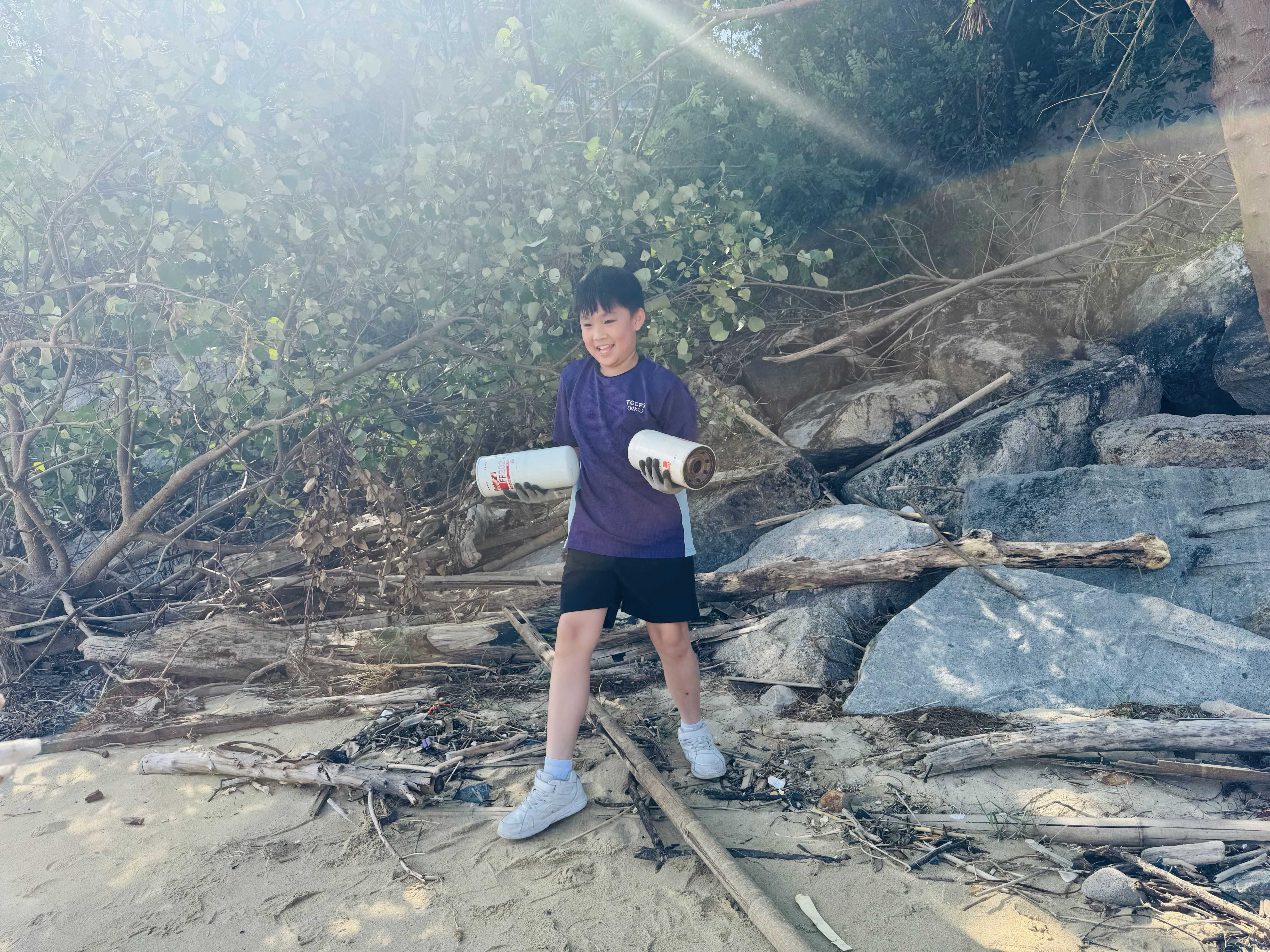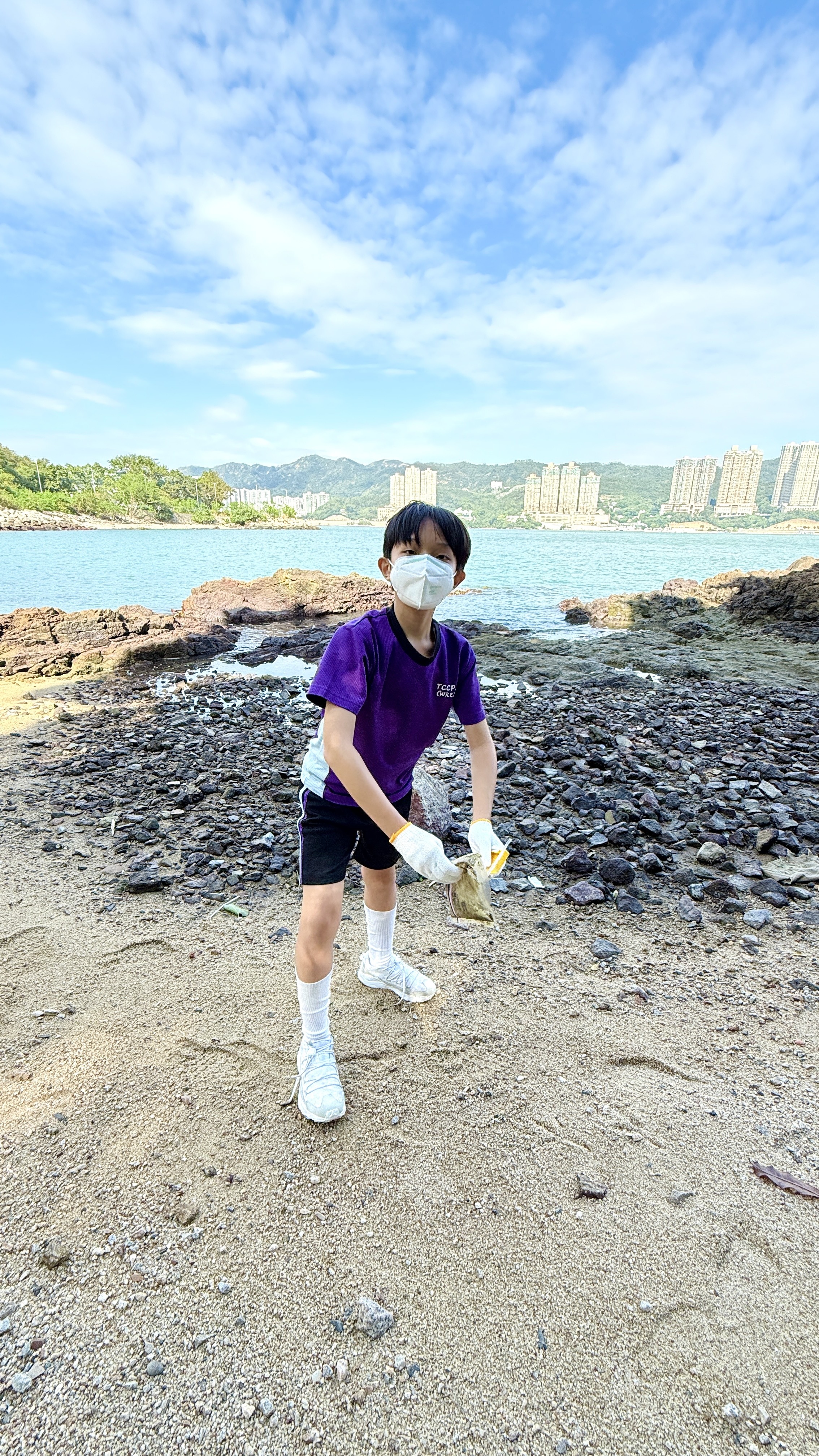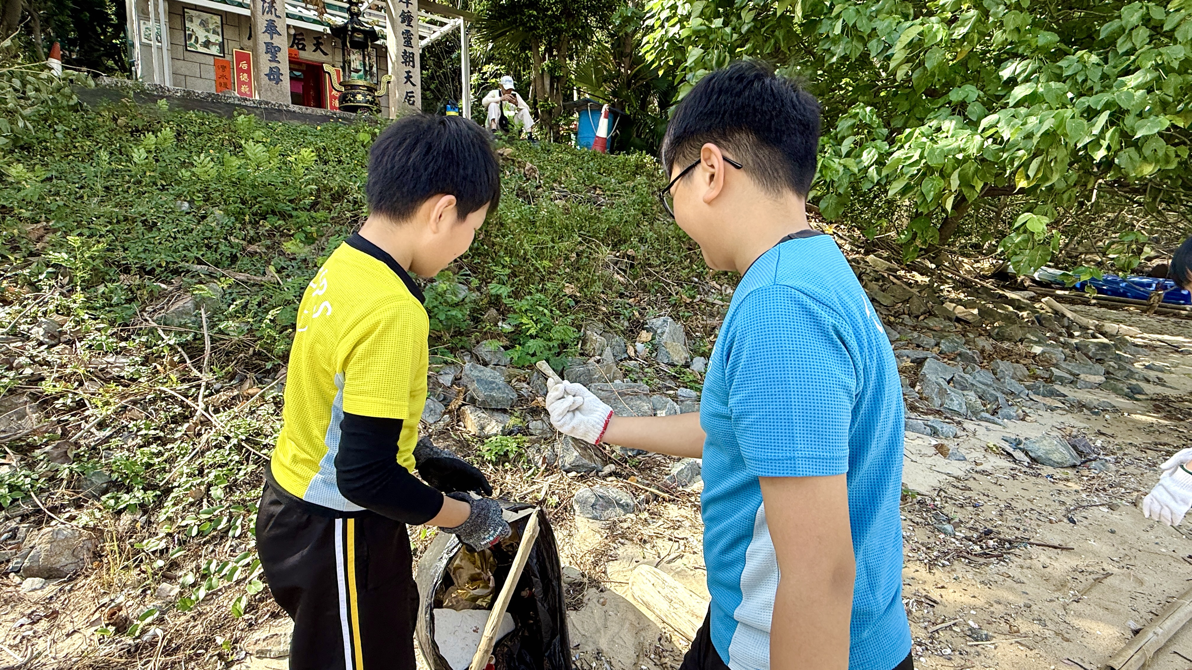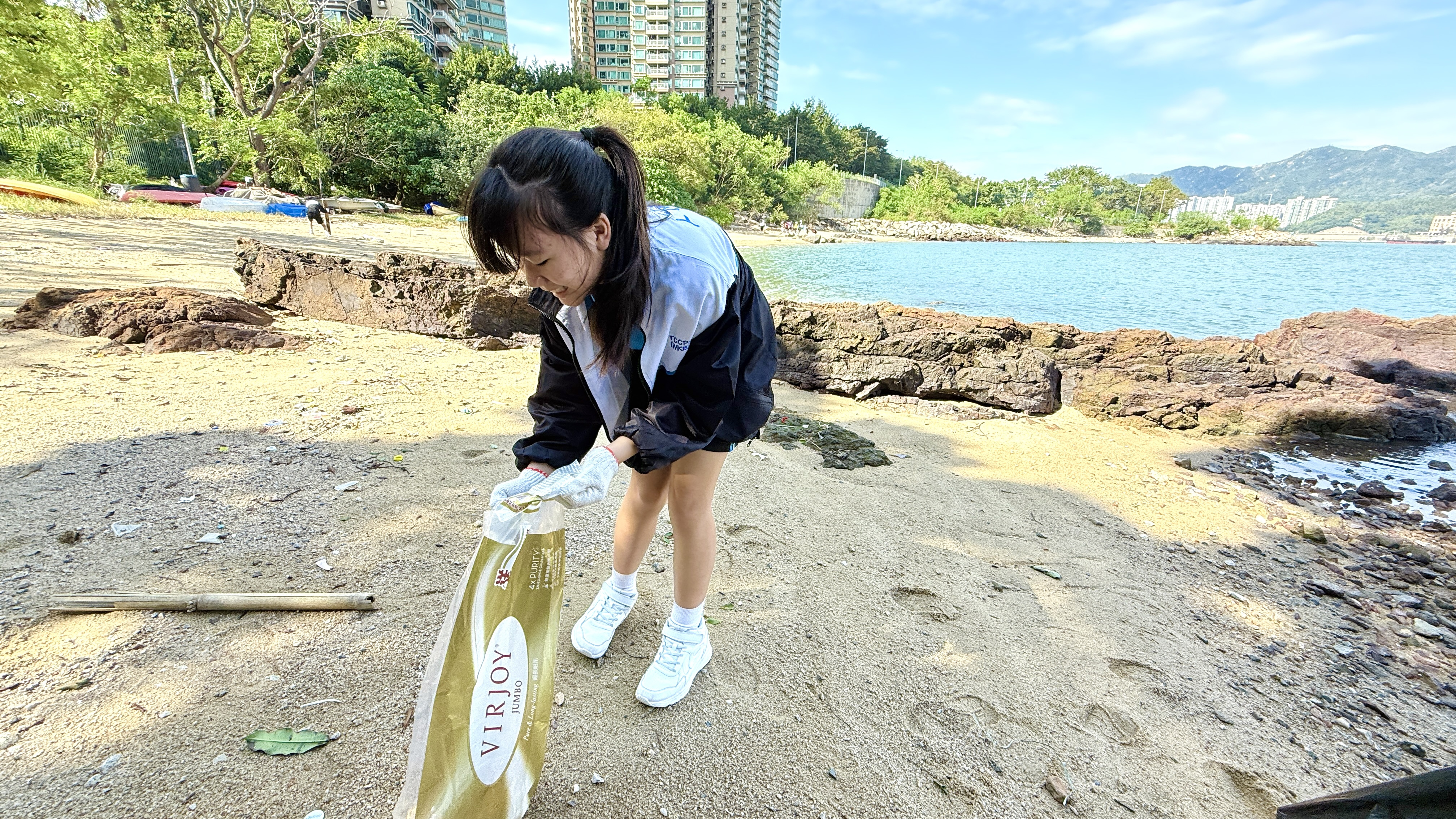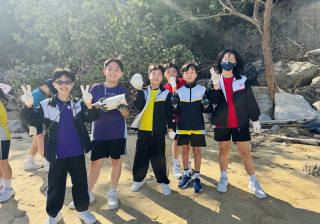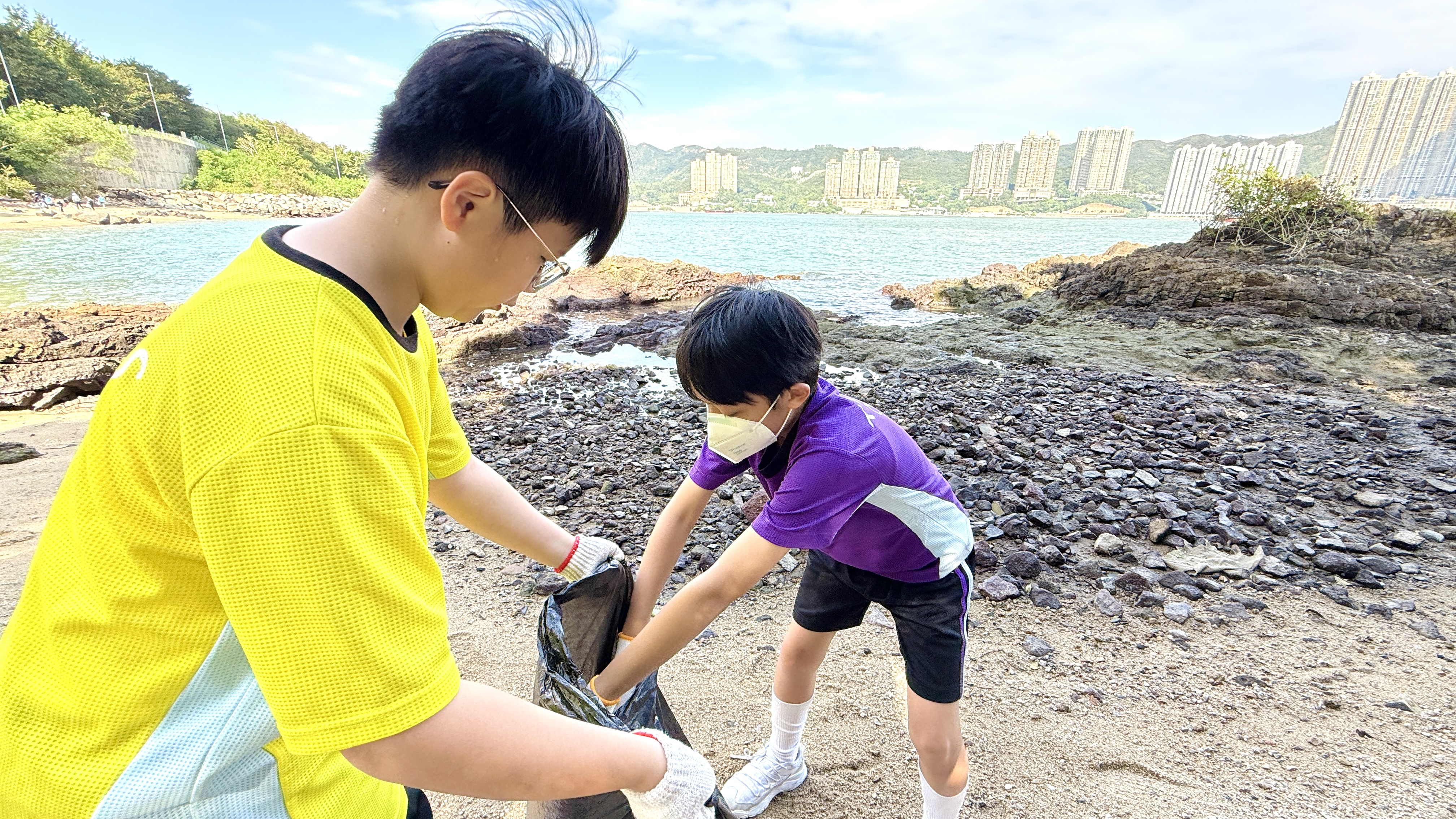 5-6年級同學身體力行,前往沙灘清潔垃圾,齊齊為保護海岸生態出一分力。