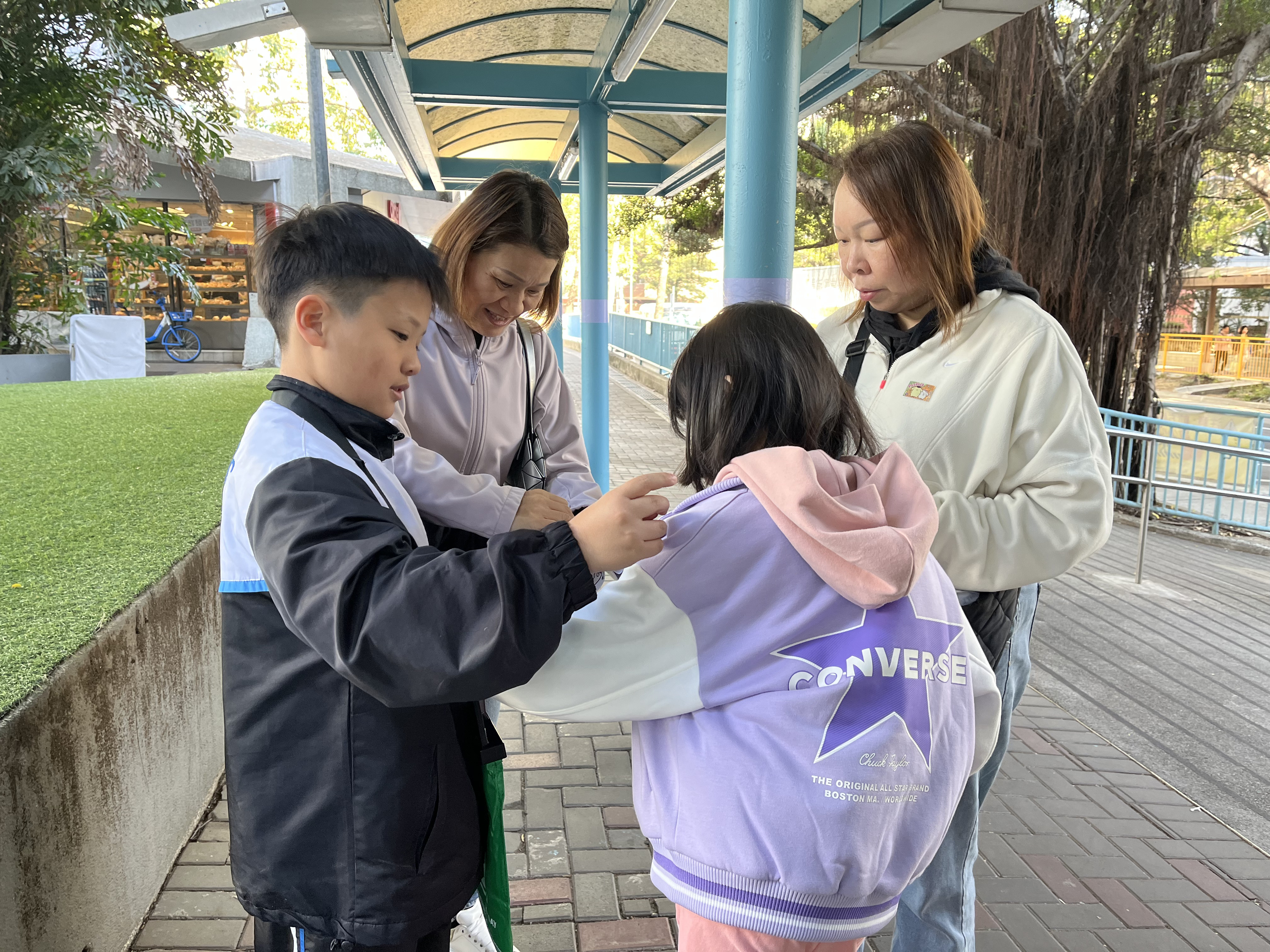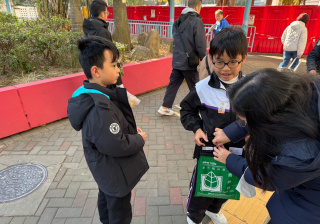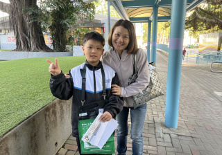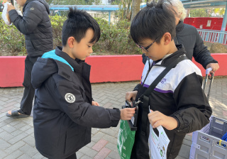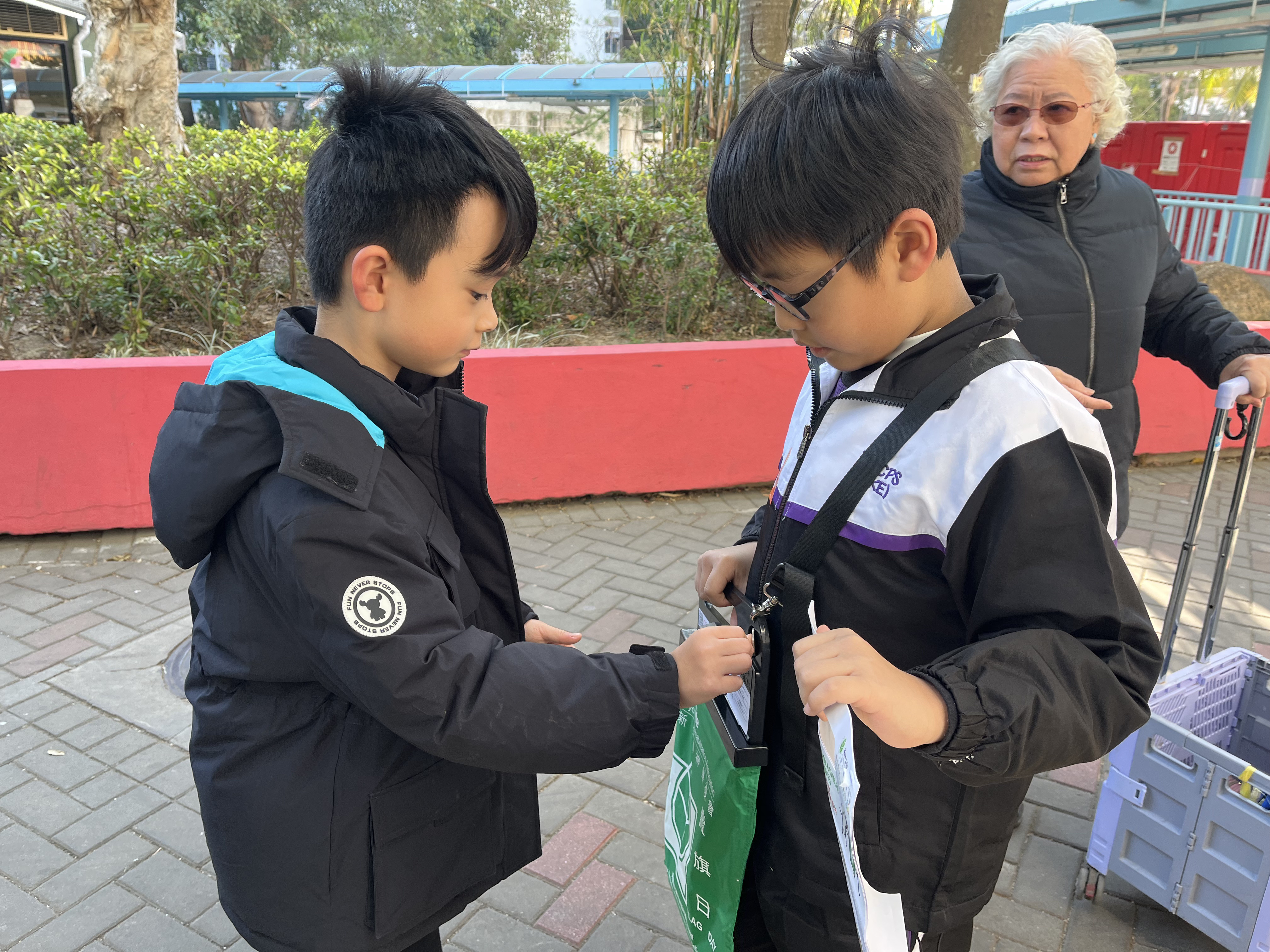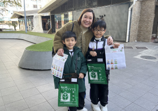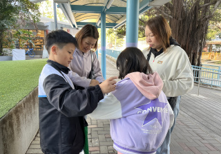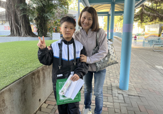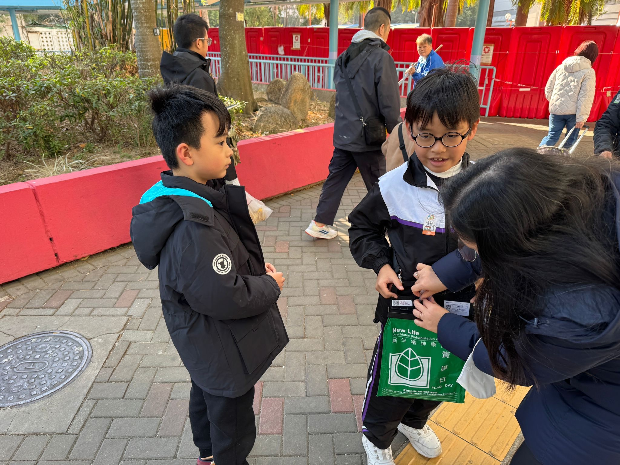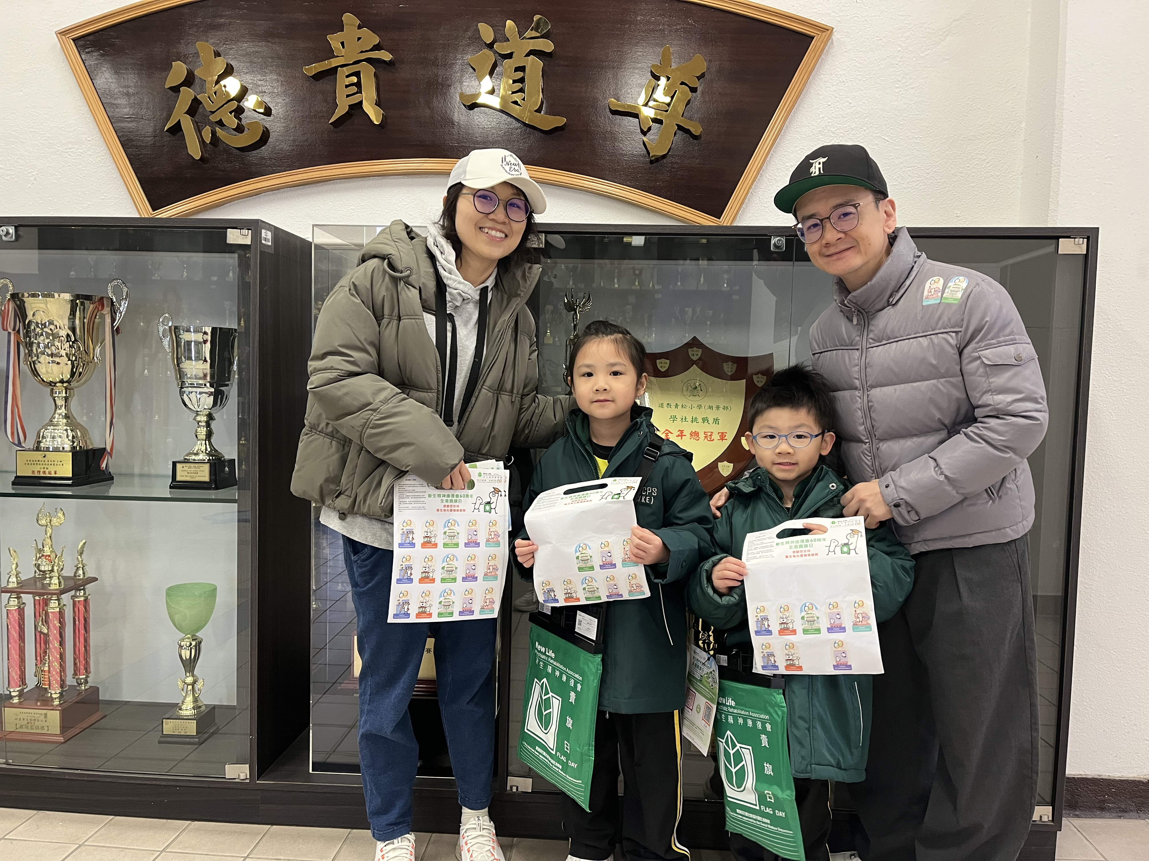 親子們身體力行,不怕寒冷的天氣,積極在屯門參與賣旗活動,受助機構「新生精神康復會」對家長及學生的熱心公益表示感謝。