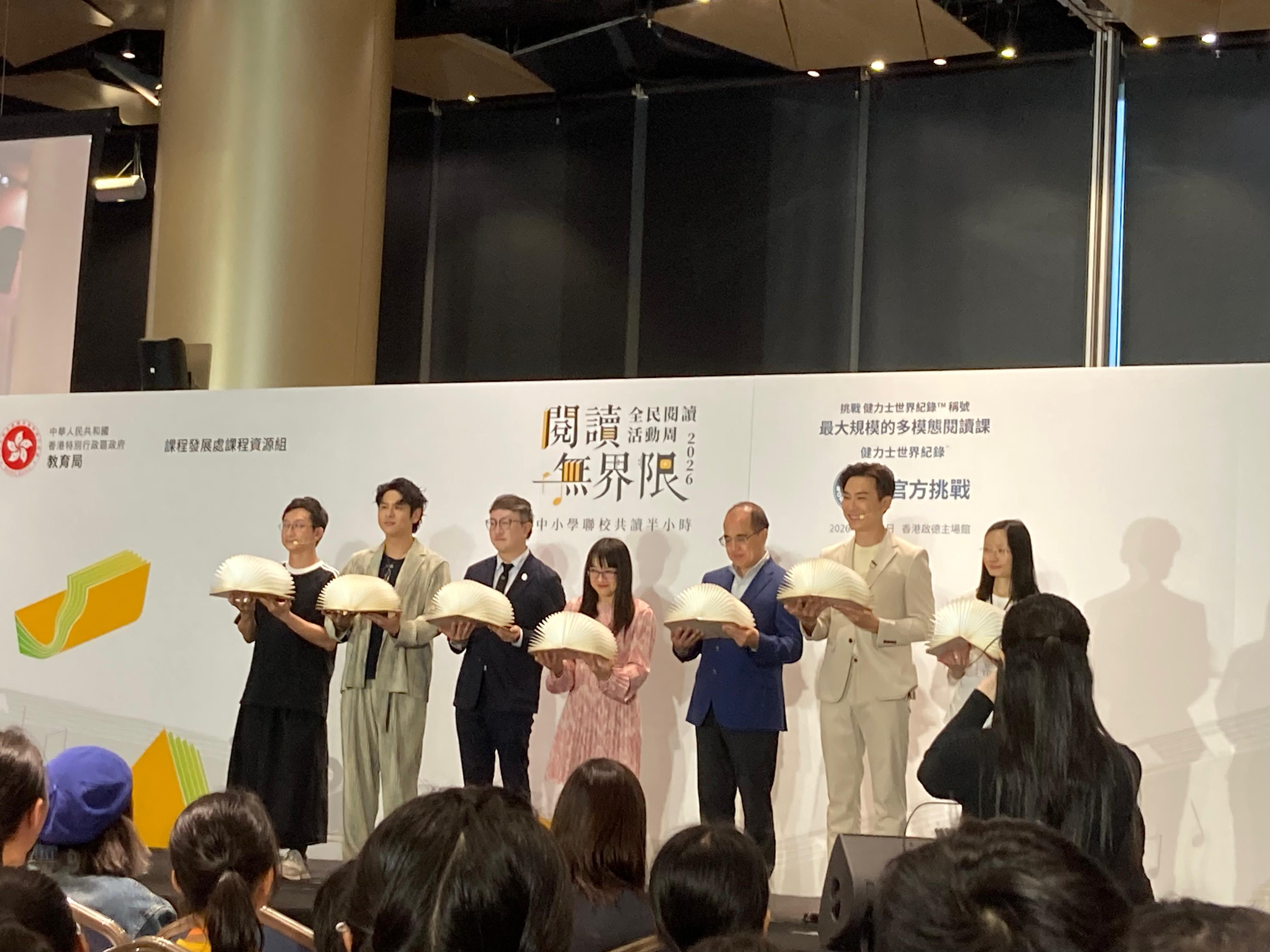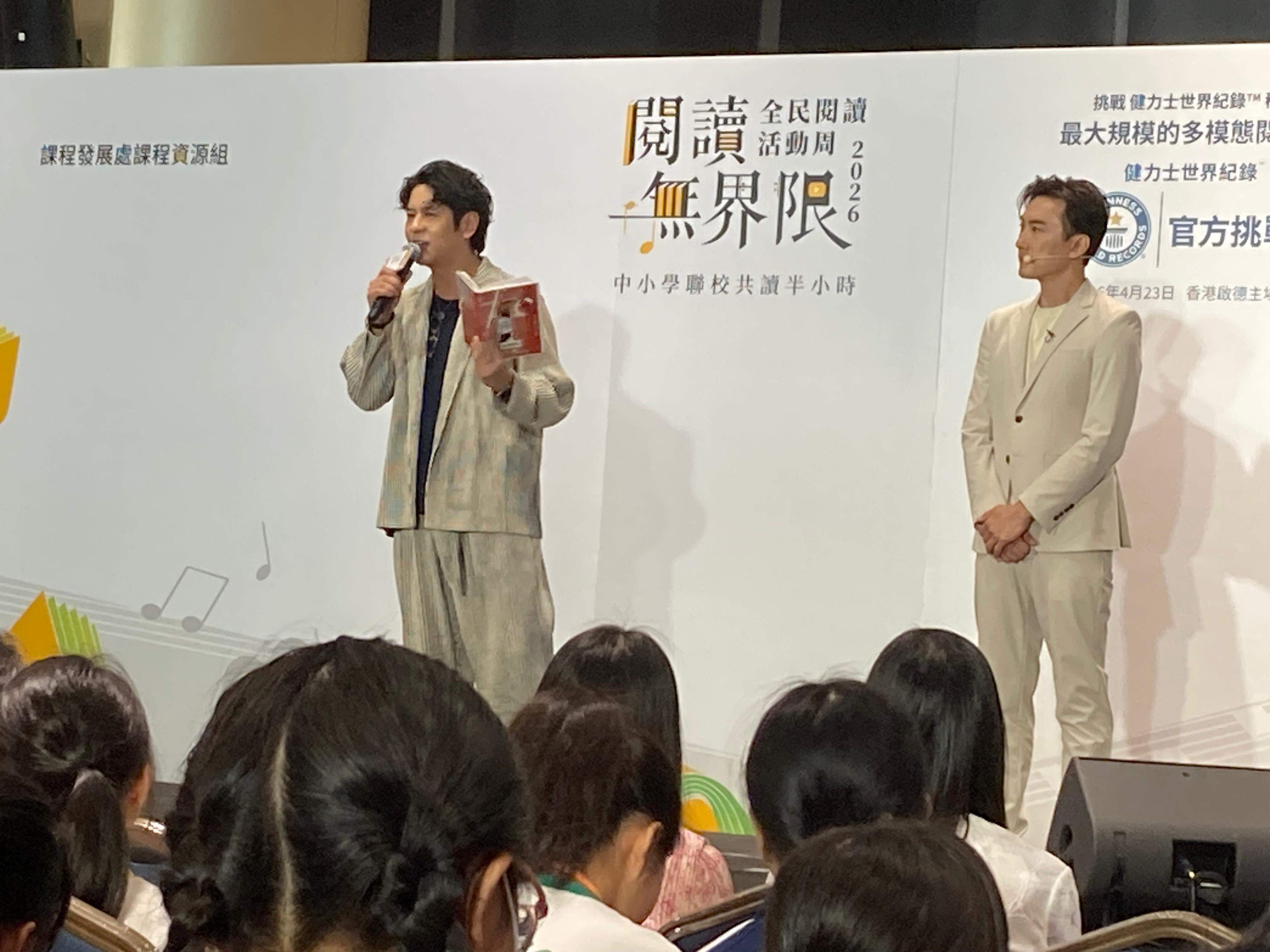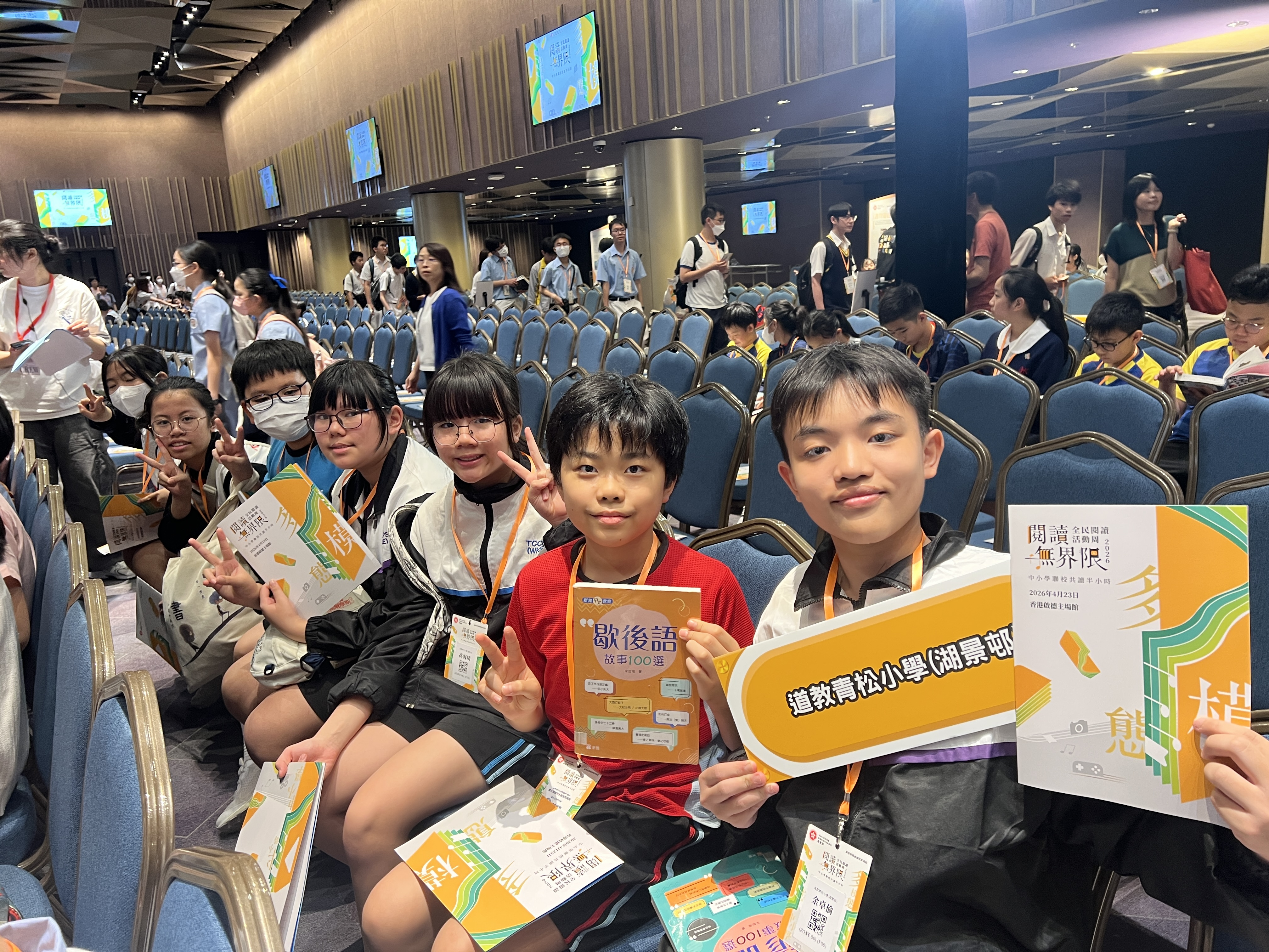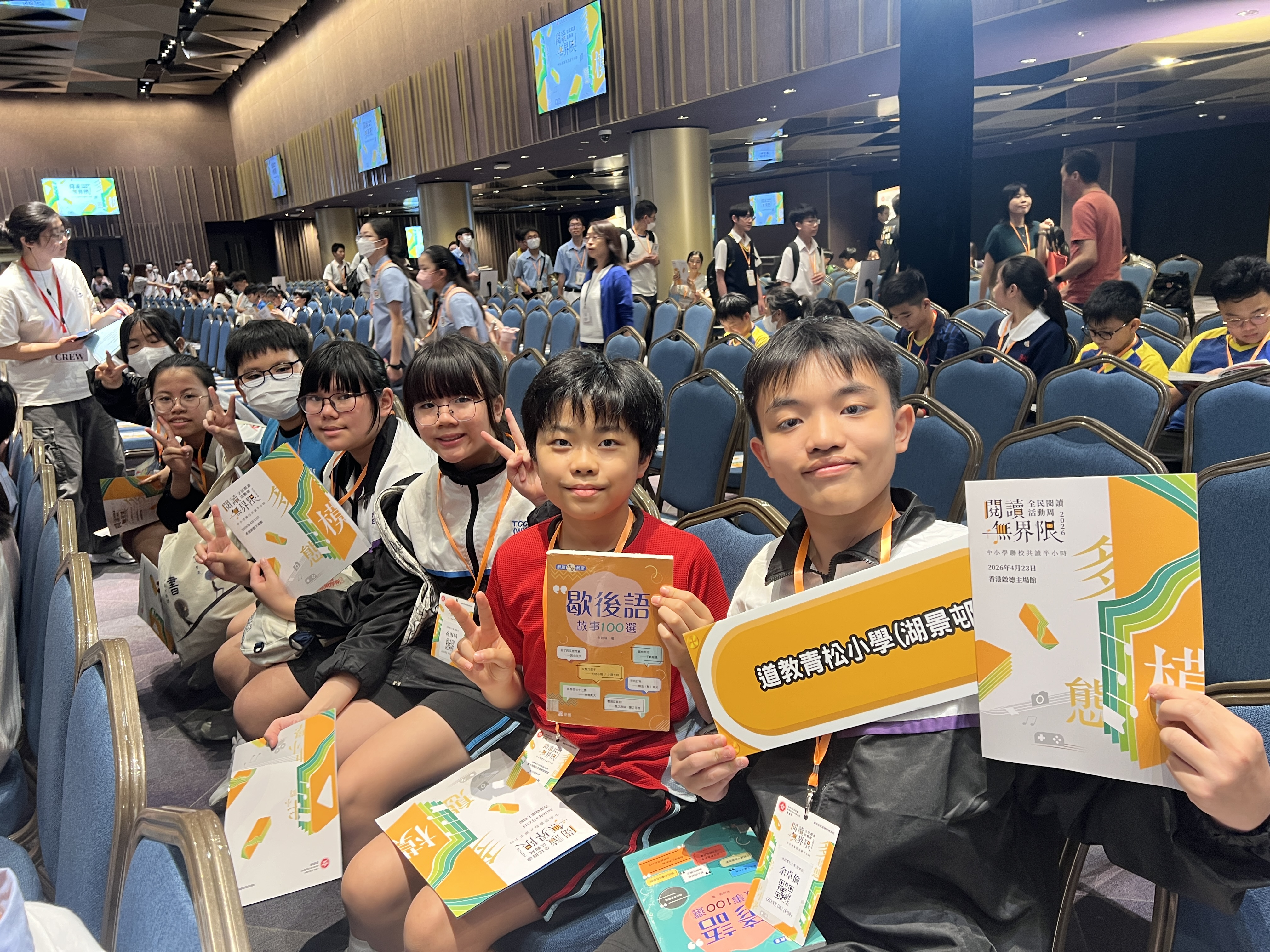 本校很高興能夠參與由教育局課程發展處舉辦的「閱讀無界限分享會暨中小學聯校共讀半小時」活動。當天節目內容精彩豐富,氣氛熱烈而充滿啟發。首先,由林溥來先生(Patrick Sir)帶領全場進行多模態閱讀課,透過不同媒介與互動方式,讓同學們更投入地探索閱讀的樂趣。其後,著名歌手許廷鏗先生更獻唱三首動聽歌曲,為活動增添不少溫暖與活力。活動亦安排了中小學聯校共讀半小時,讓不同學校的師生共同閱讀、分享心聲,彼此交流成長。